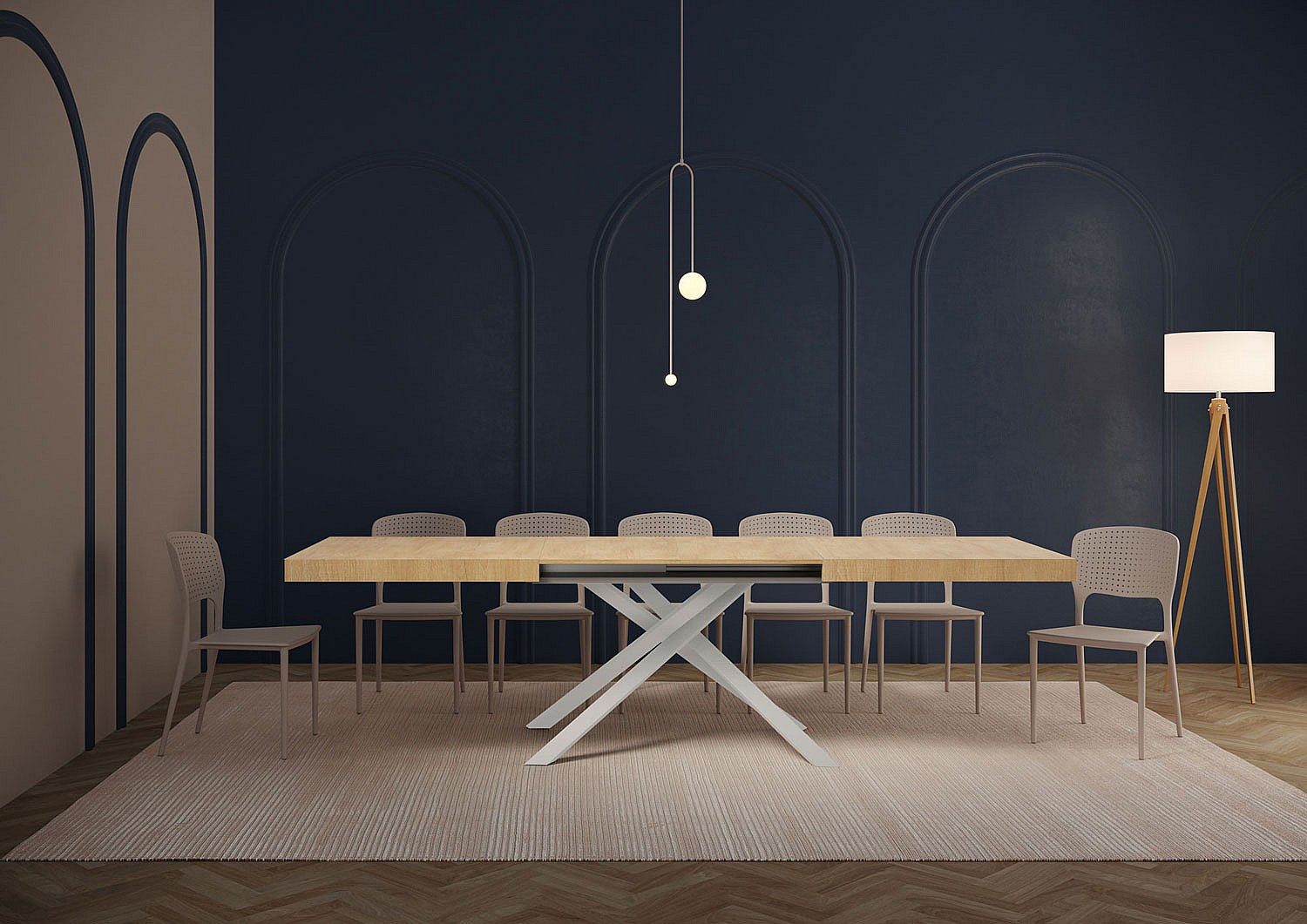 Ausziehtisch 90x160/264 cm Karida Eiche Natur mit weißem Eisenrahmen