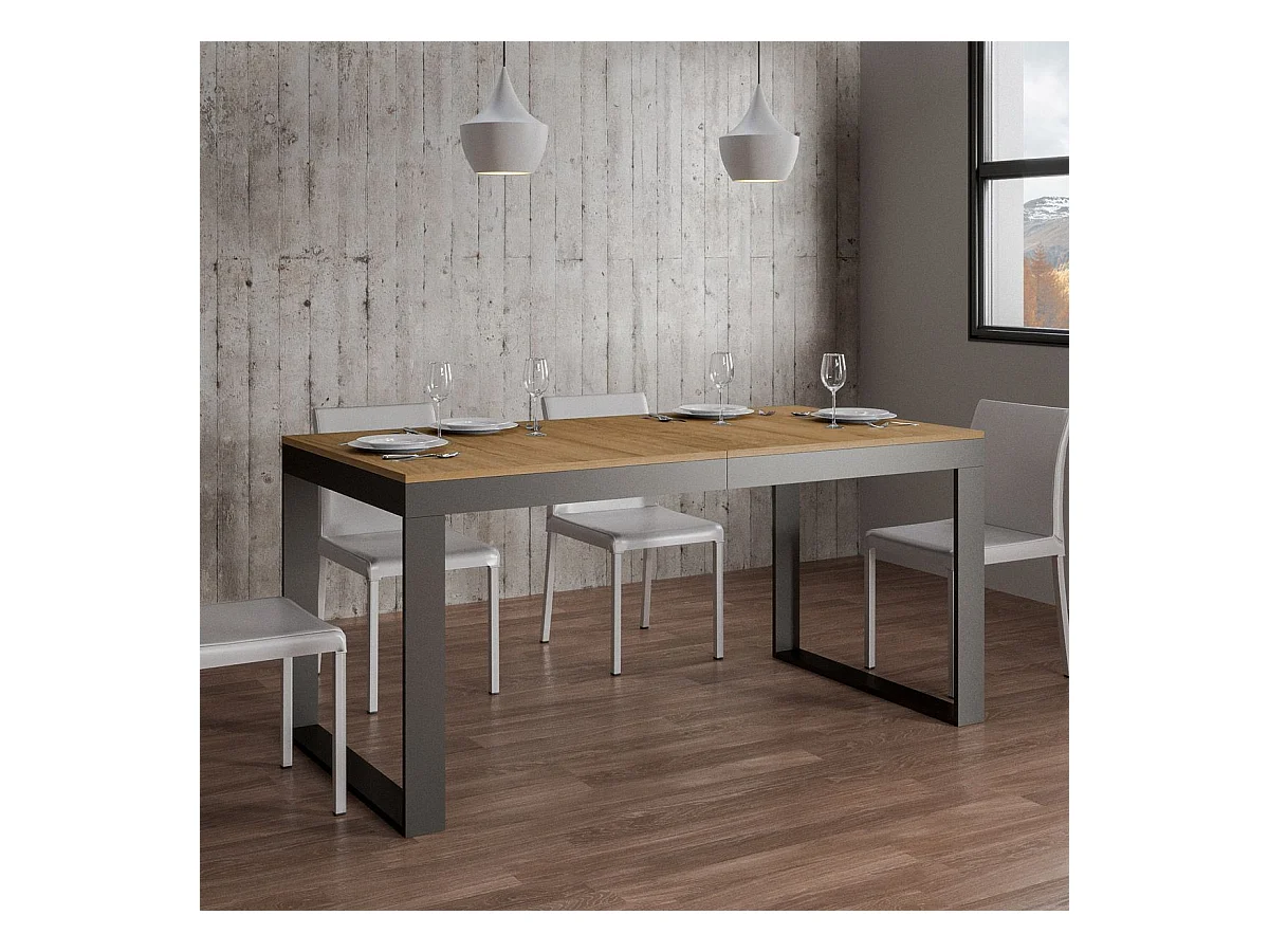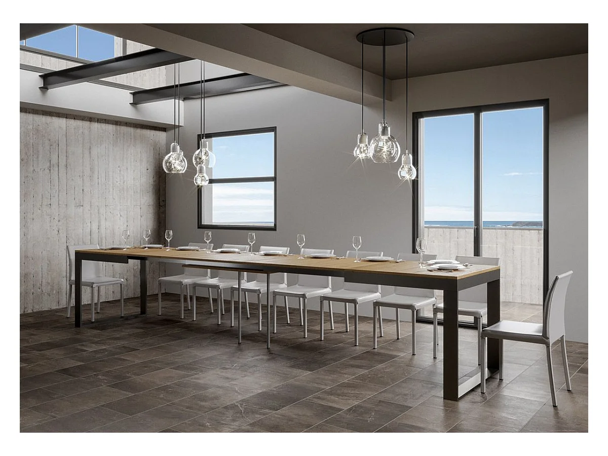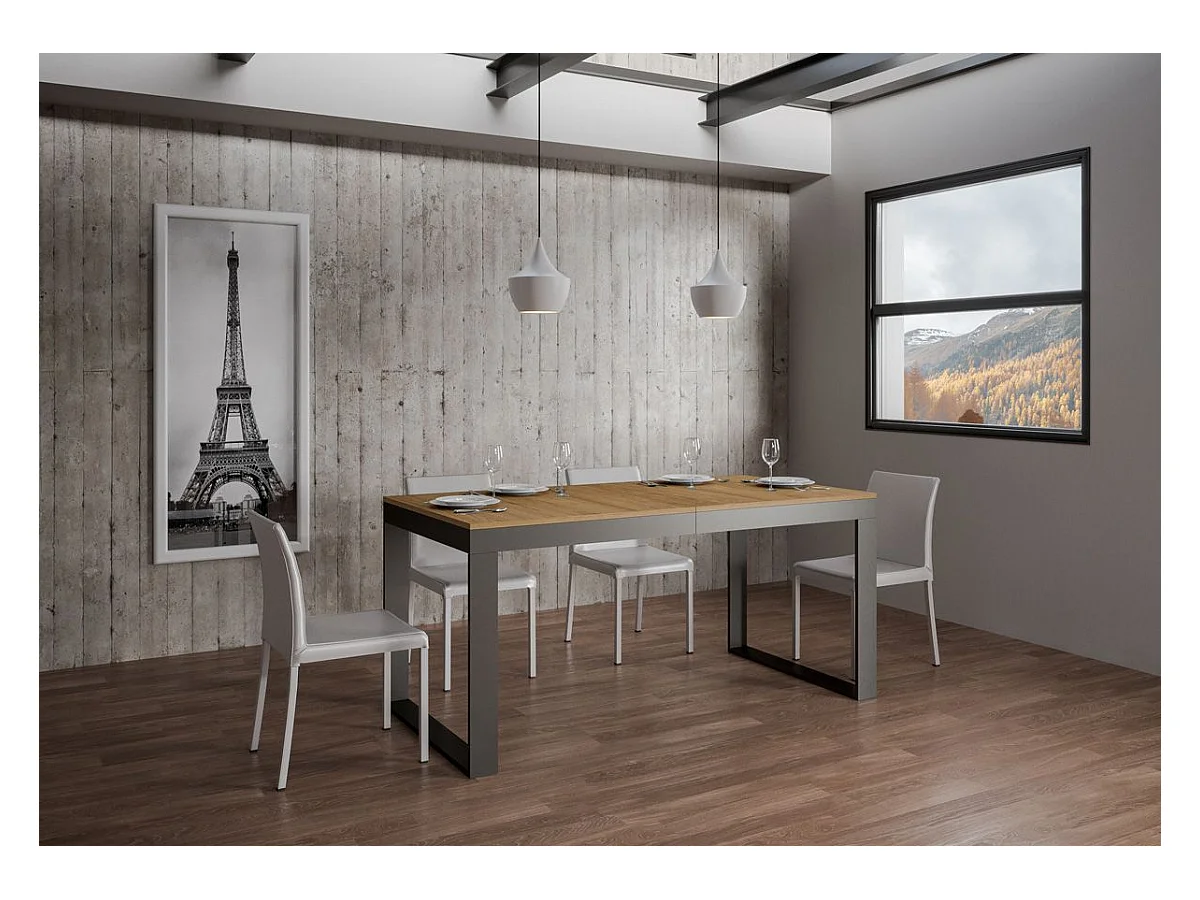 Ausziehbarer Tisch 90x160/420 cm Gestell Tecno Evolution Nature Eiche Anthrazit