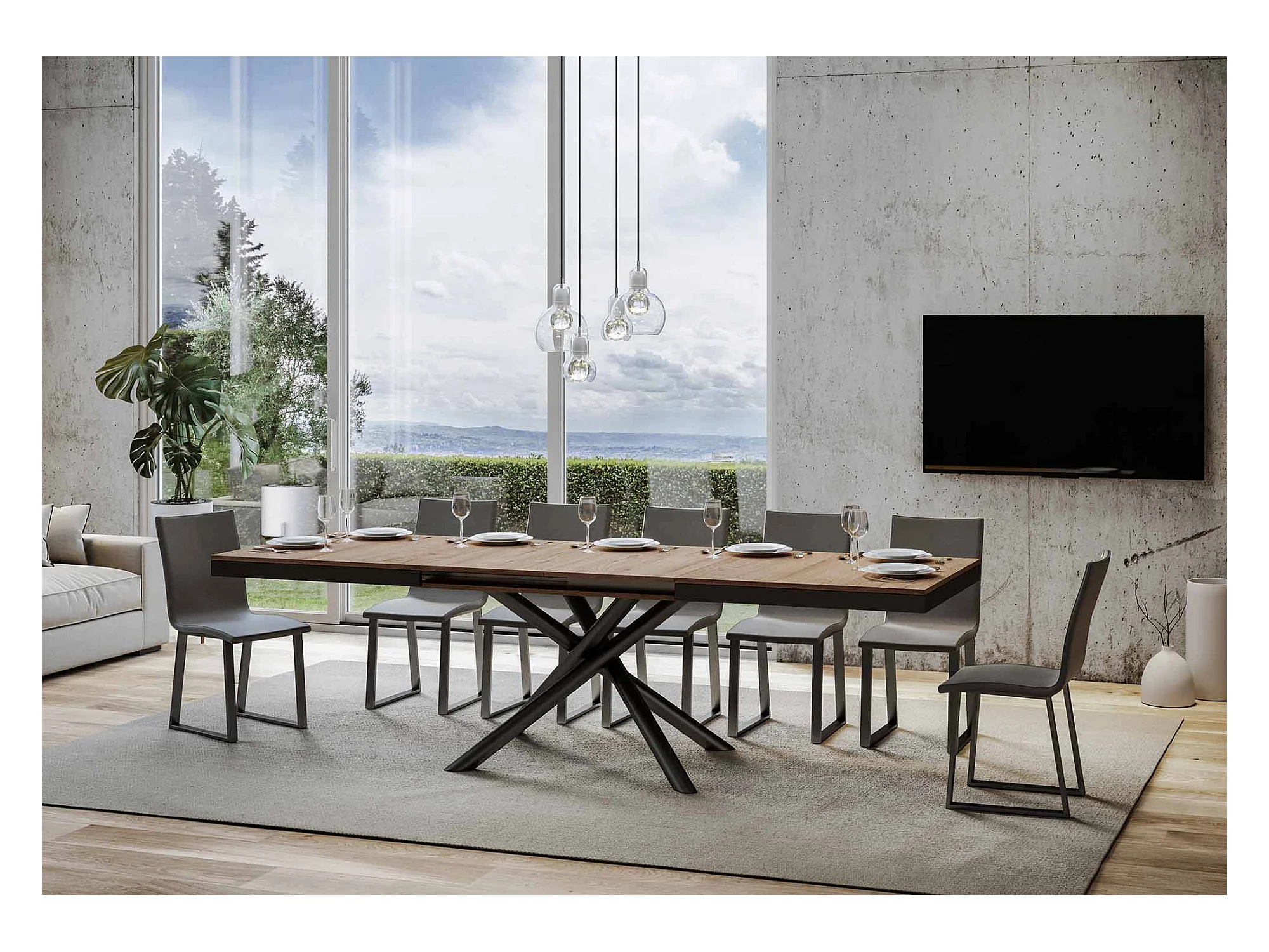 Ausziehtisch 90x180/440 cm Famas Evolution Eiche Natur mit Eisenrahmen aus Anthrazit