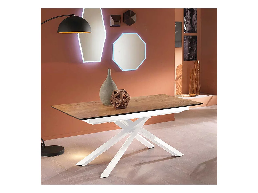 Ausziehtisch in Weiß und Eichefarben Mikado Fußgestell