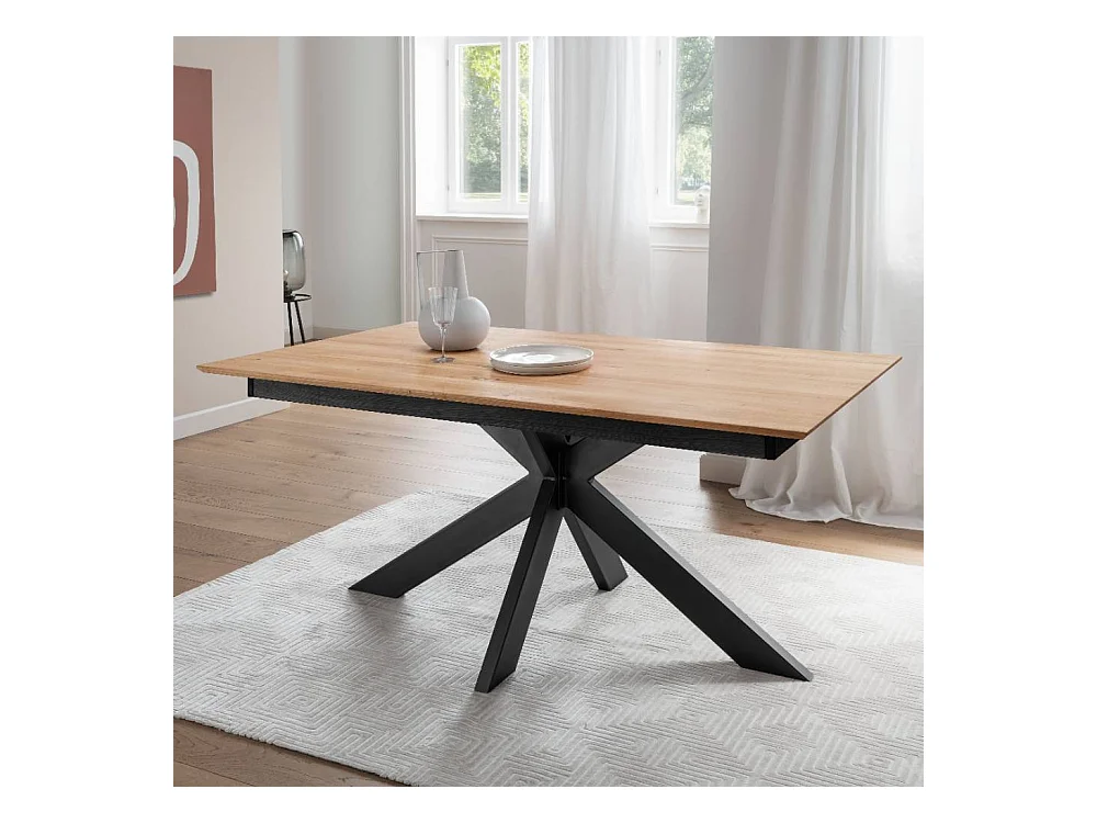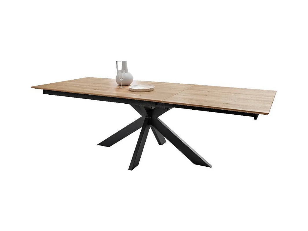 Ausziehtisch Massivholztisch mit Spider Gestell in Wildeichefarben