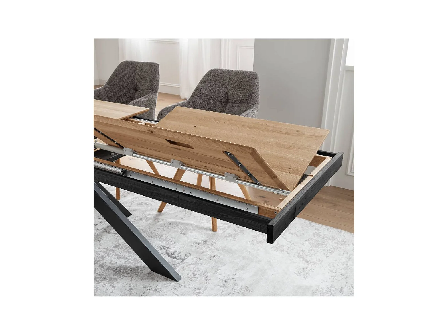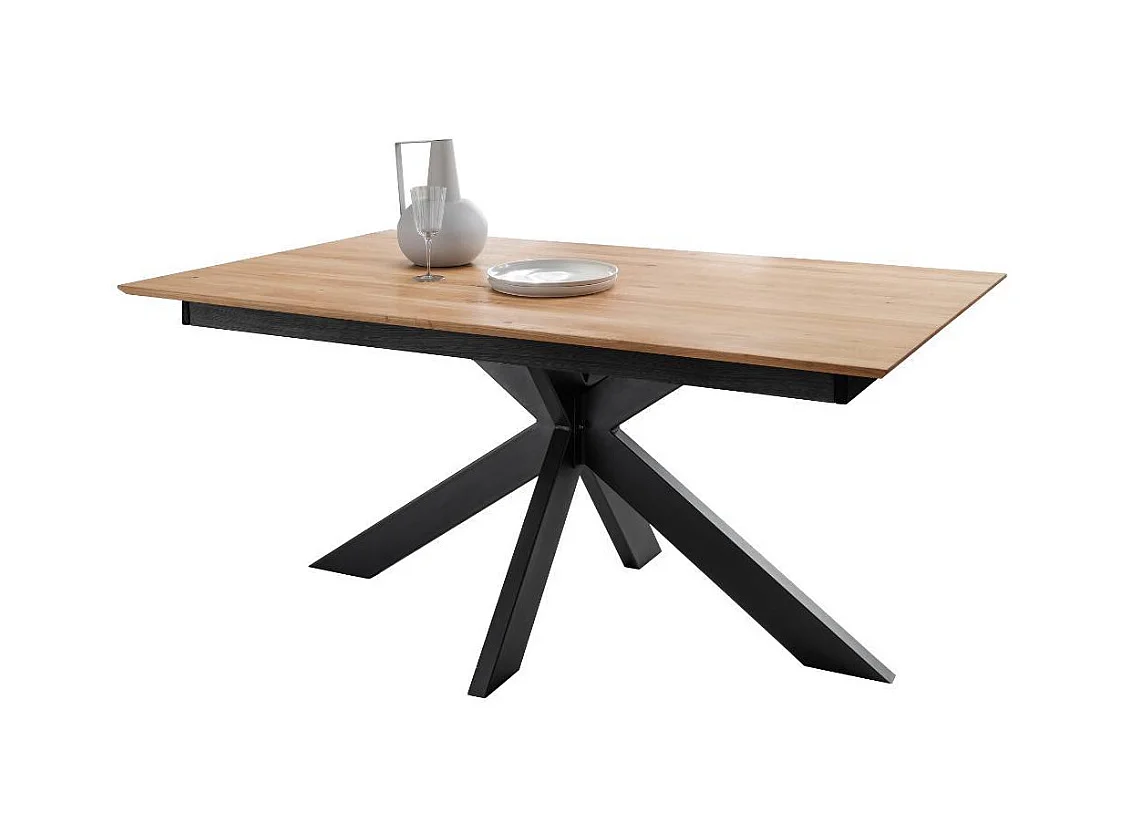 Ausziehtisch Massivholztisch mit Spider Gestell in Wildeichefarben