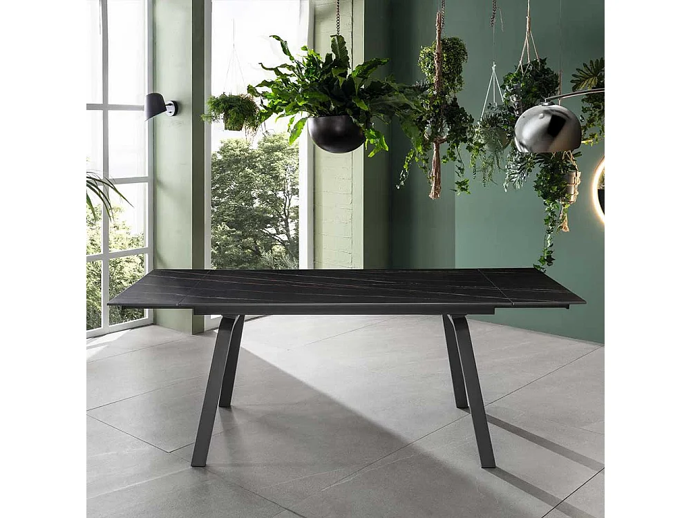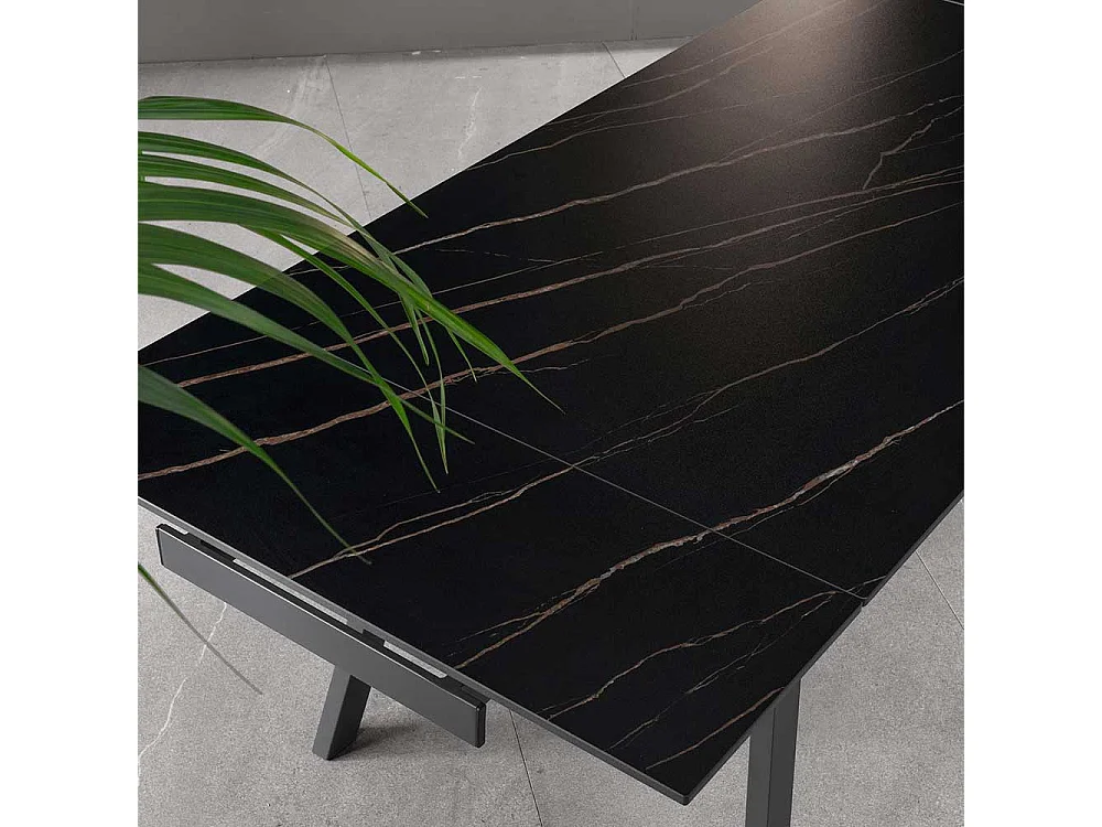 Ausziehtisch rechteckig mit Keramikplatte Schwarz Marmoroptik