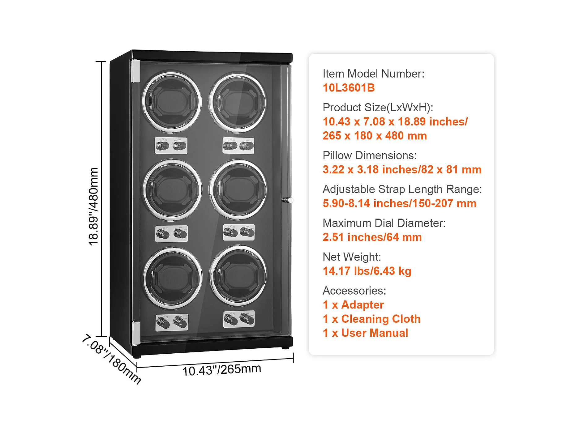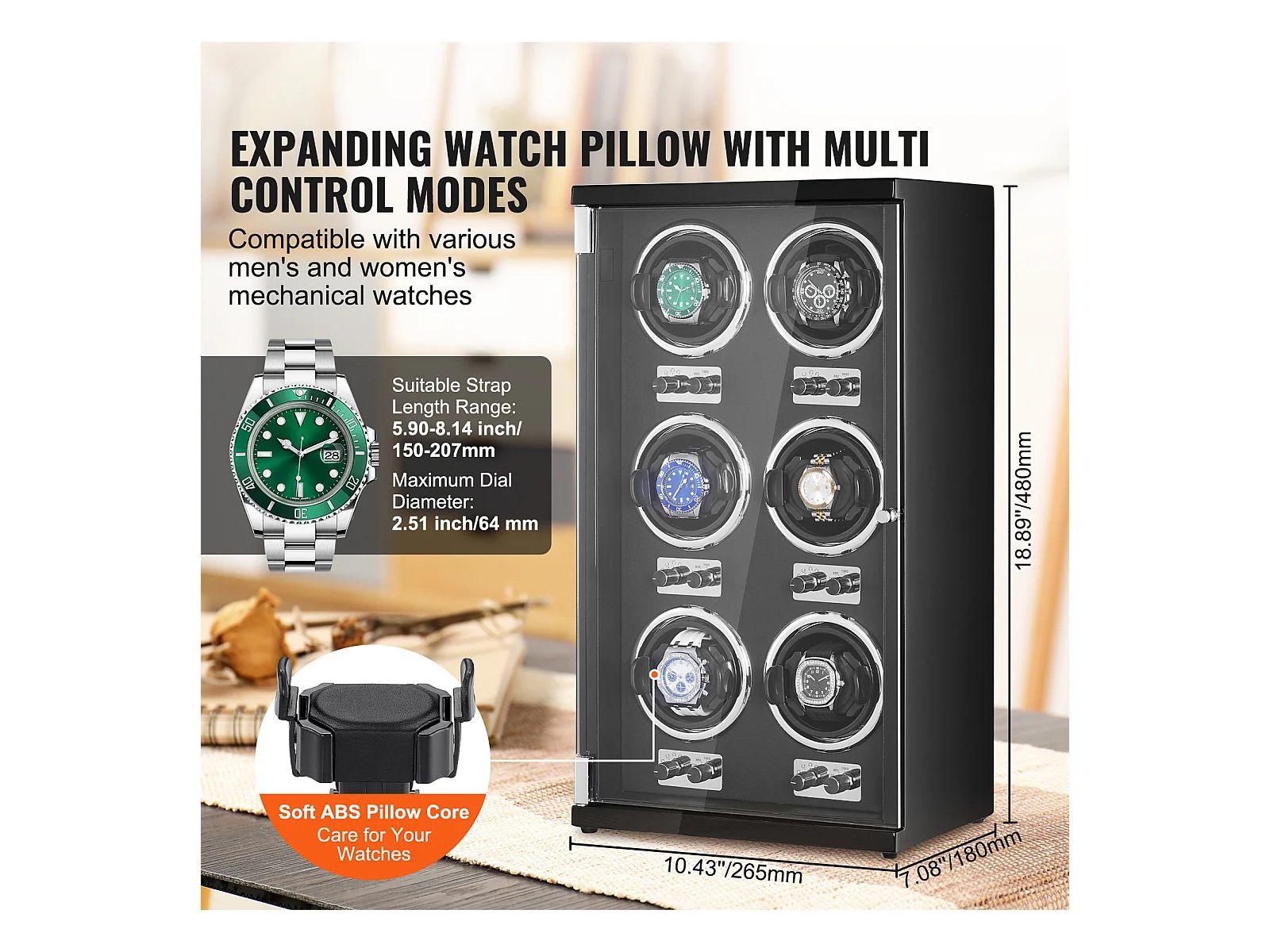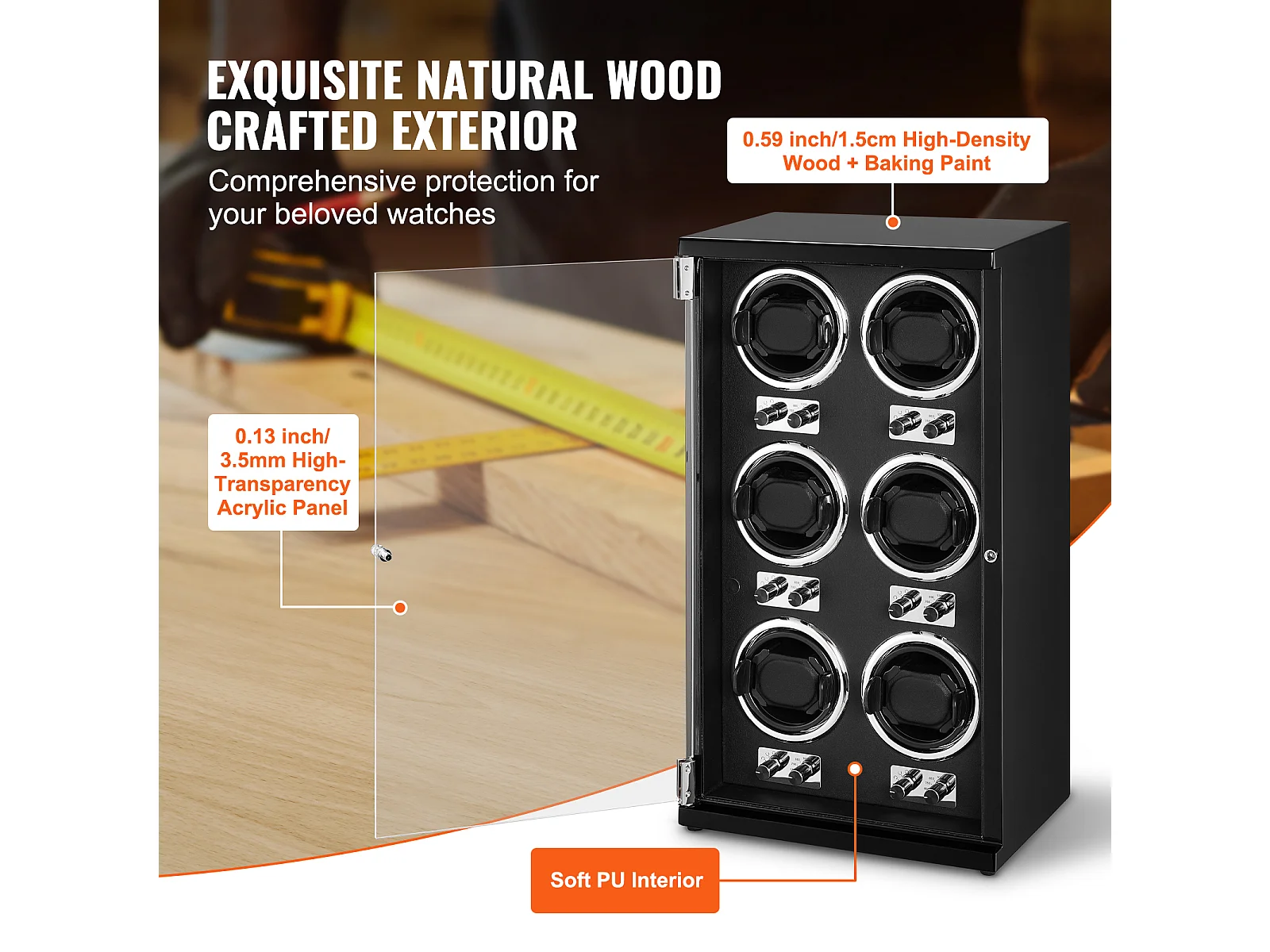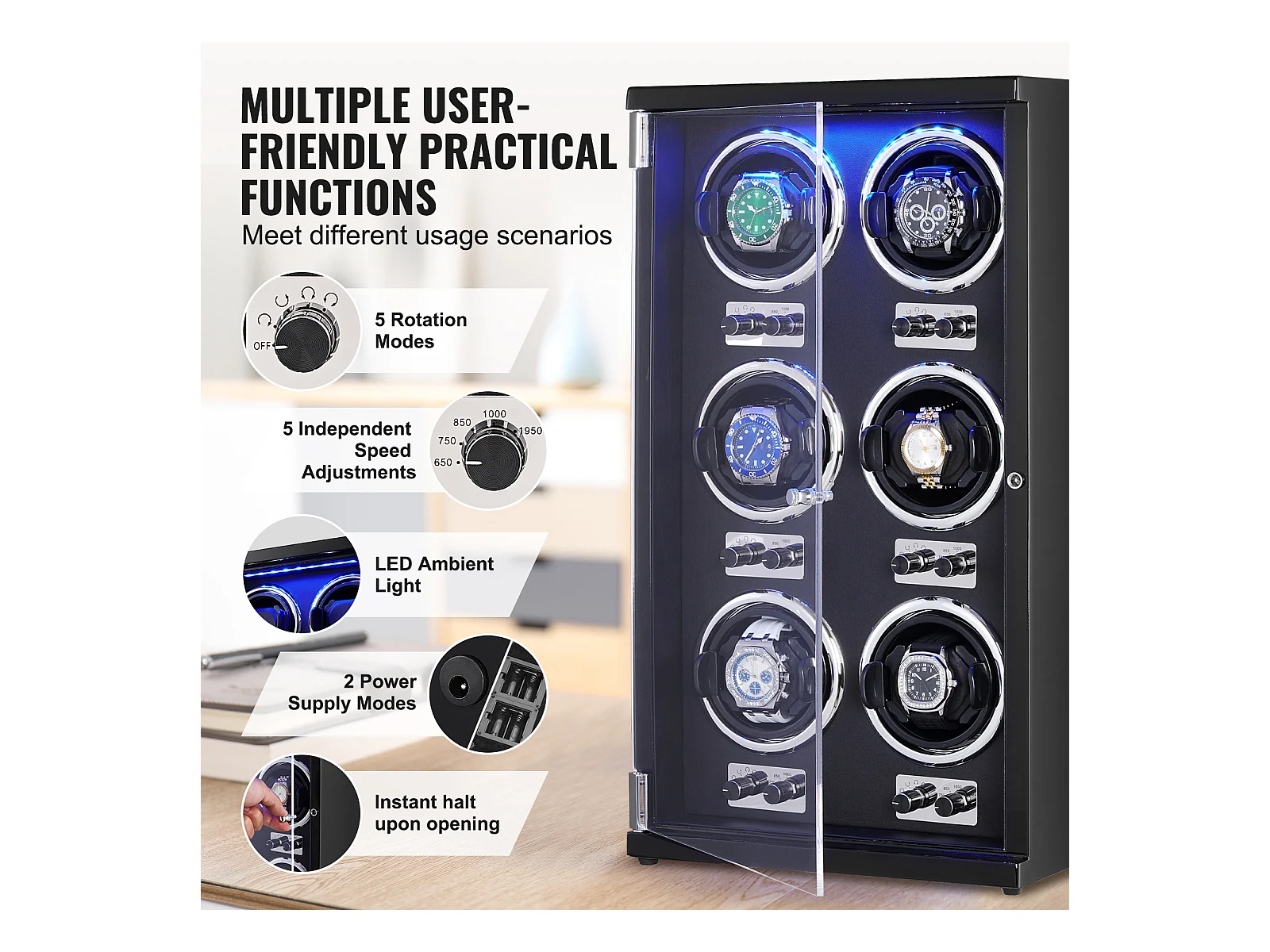 Automatikuhr-Winder SucceBuy, für 6 Automatikuhren mit 6 Japanischen Motoren Leise