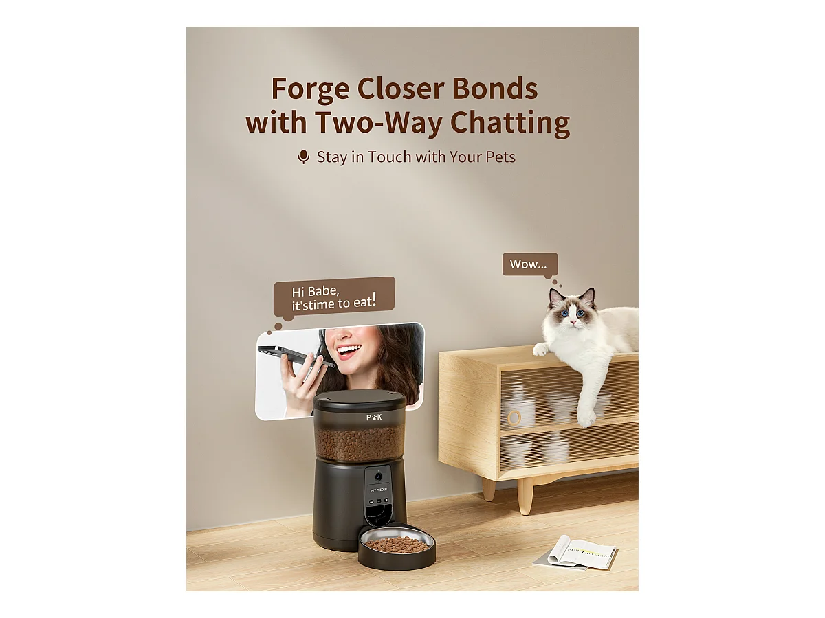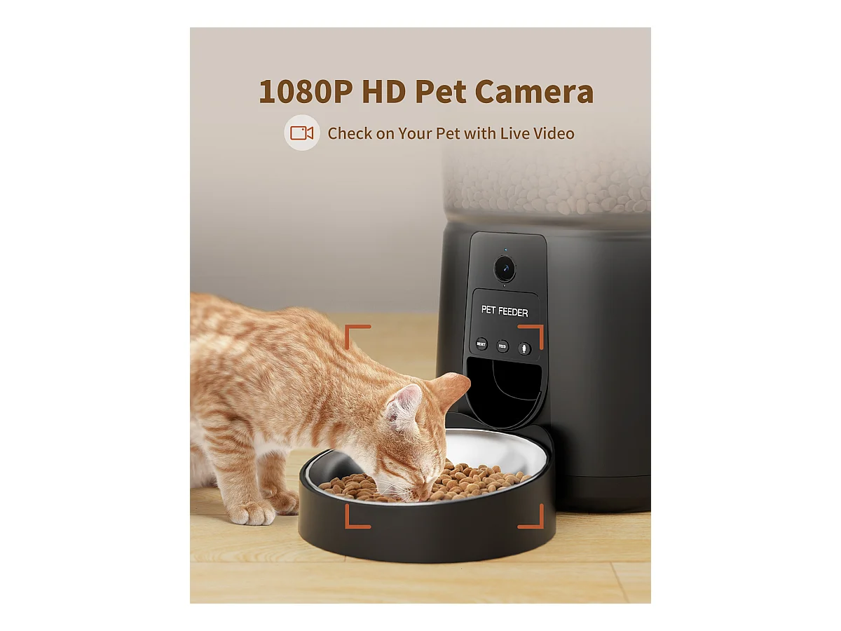 Automatischer Katzenfutterspender, 4 l automatischer Katzenfutterspender mit 1080P 2,4G WiFi-Kamera, Sprachaufzeichnung (schwarz)