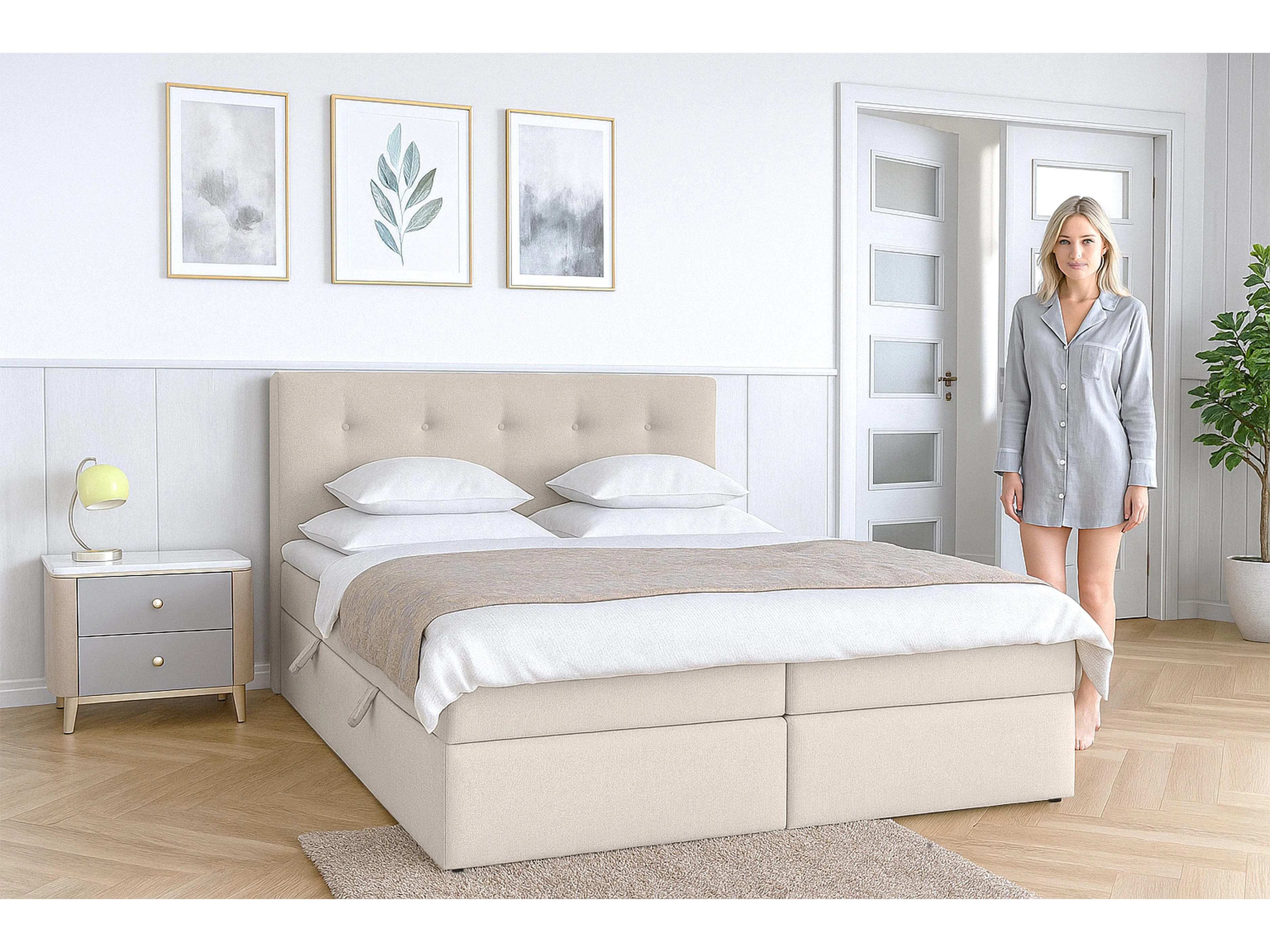 AX LIVING Baunei Boxspringbett 180x200 mit Bettkasten beiges Bett