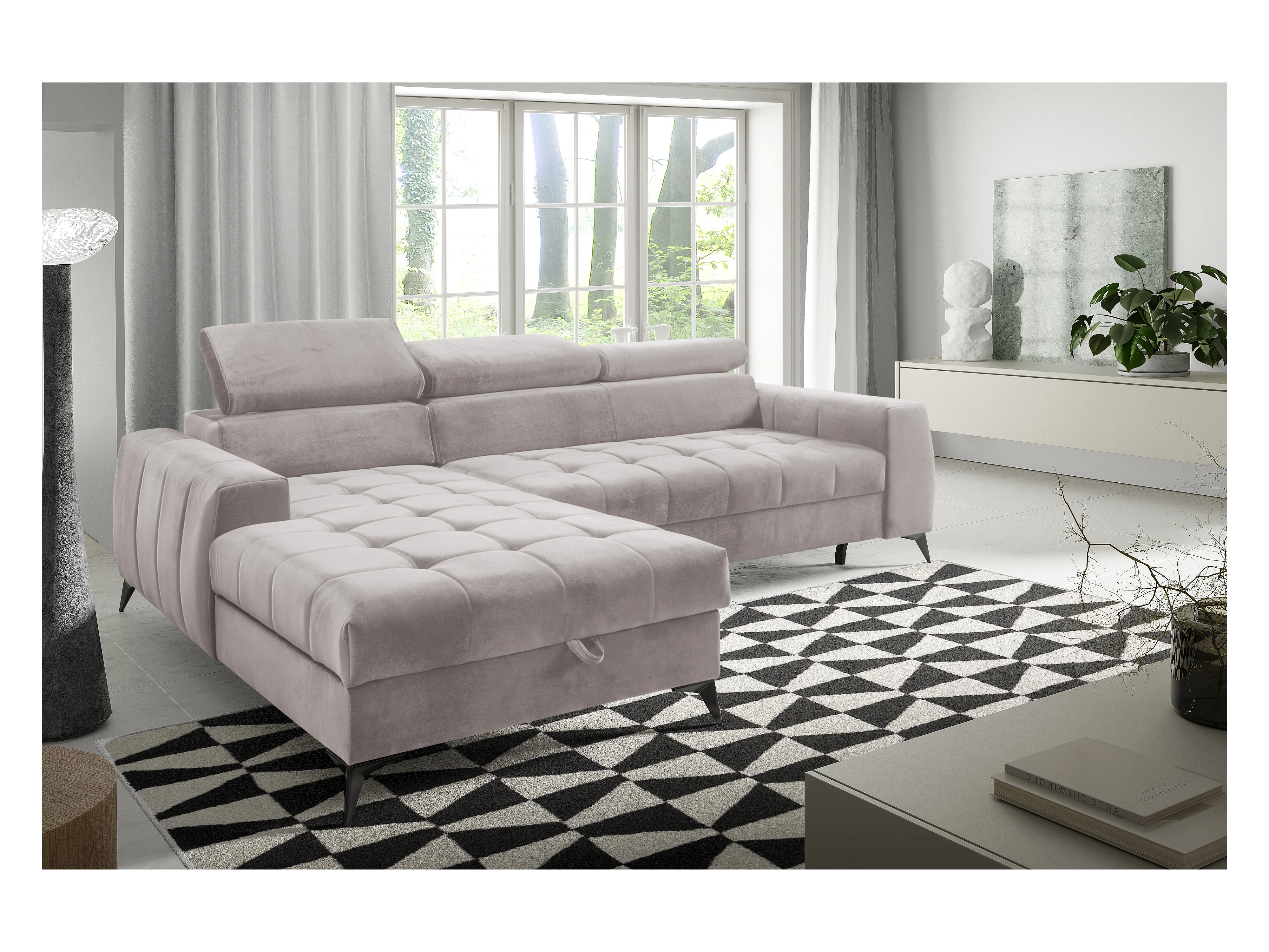 AX LIVING Beige Eckcouch mit Schlaffunktion Arkucio Mini 260 cm L