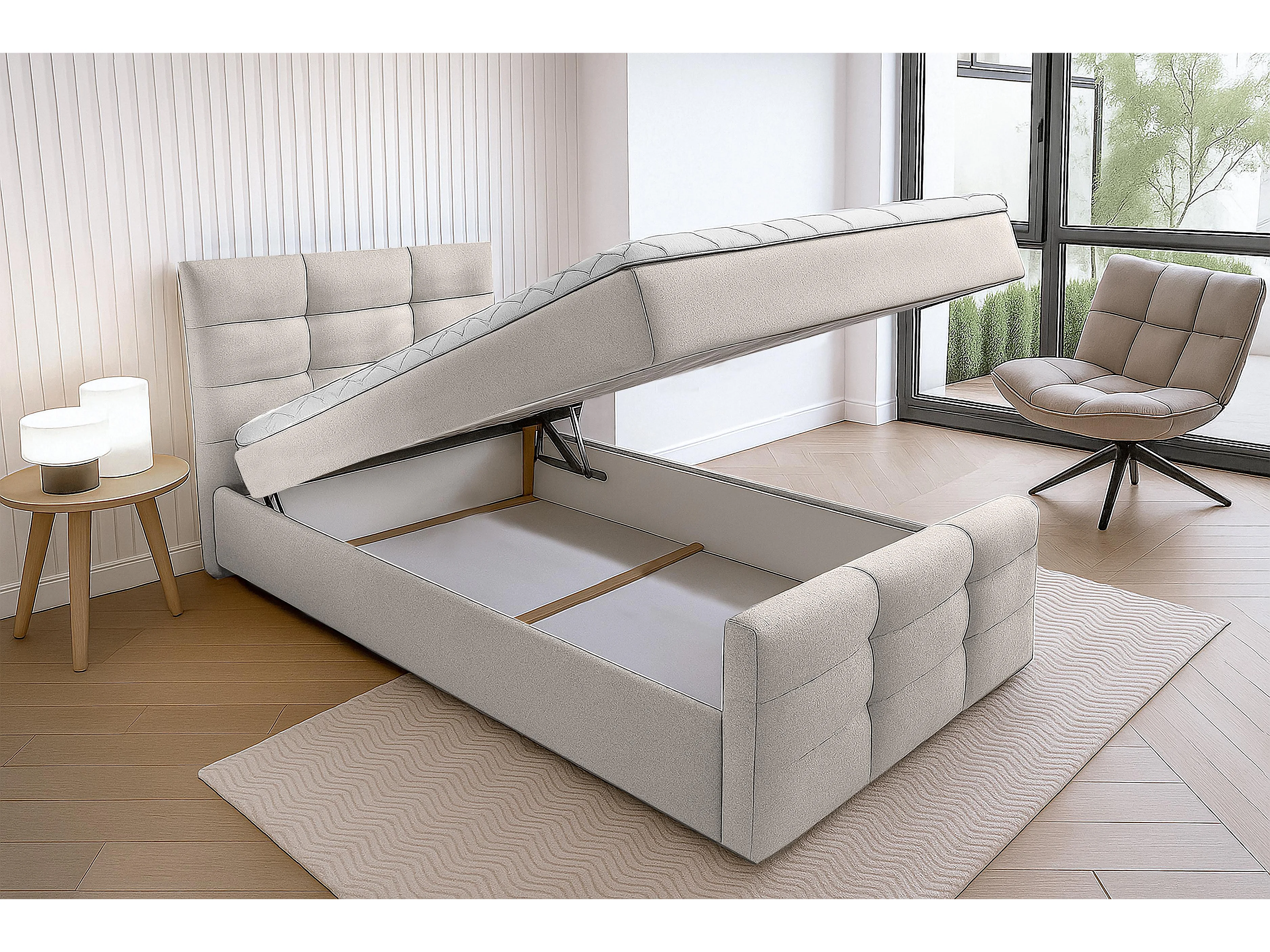 AX LIVING Bett mit Bettkasten 100x200 cm Argentaro Boxspringbett beige
