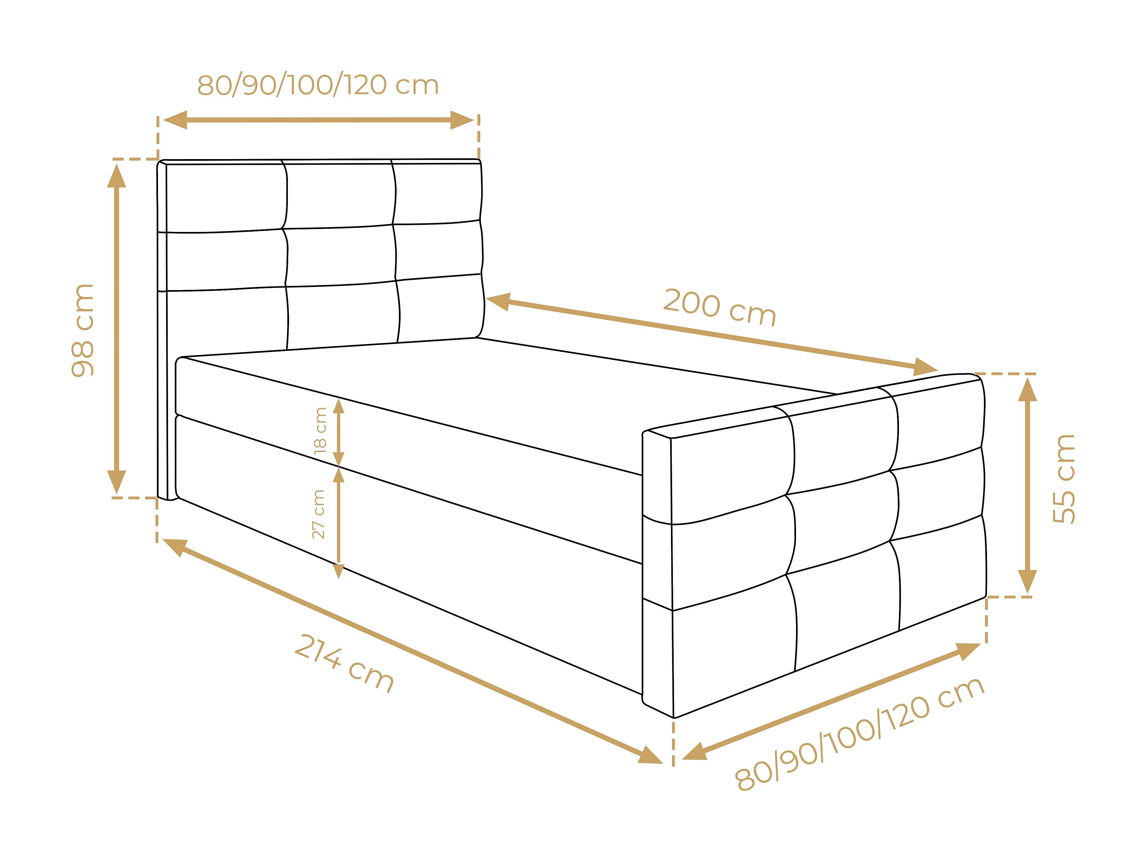 AX LIVING Bett mit Bettkasten 120x200cm Argentaro Boxspringbett schwarz