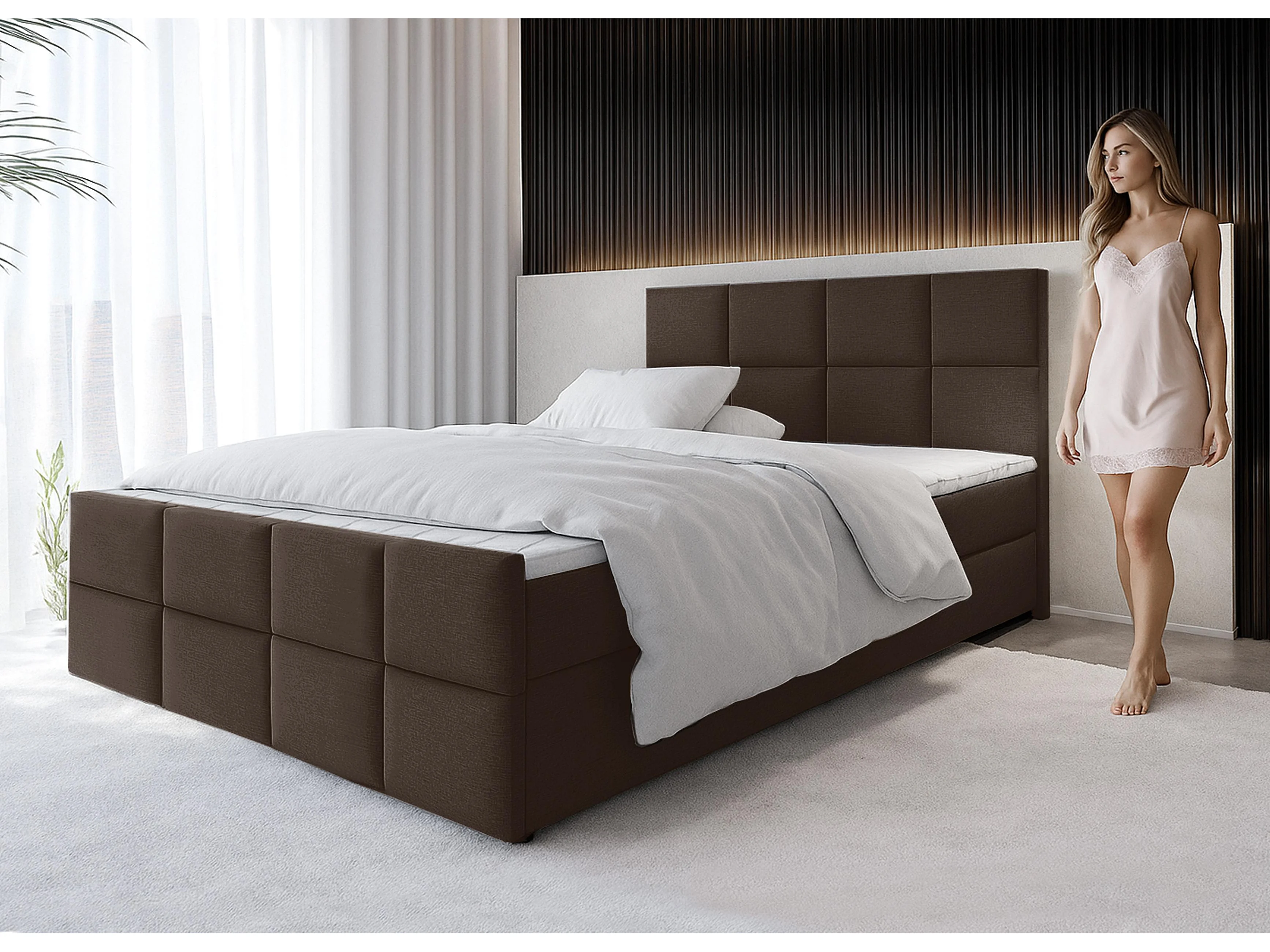 AX LIVING Boxspringbett 180x200 Braun Aleyna Bett mit Bettkasten