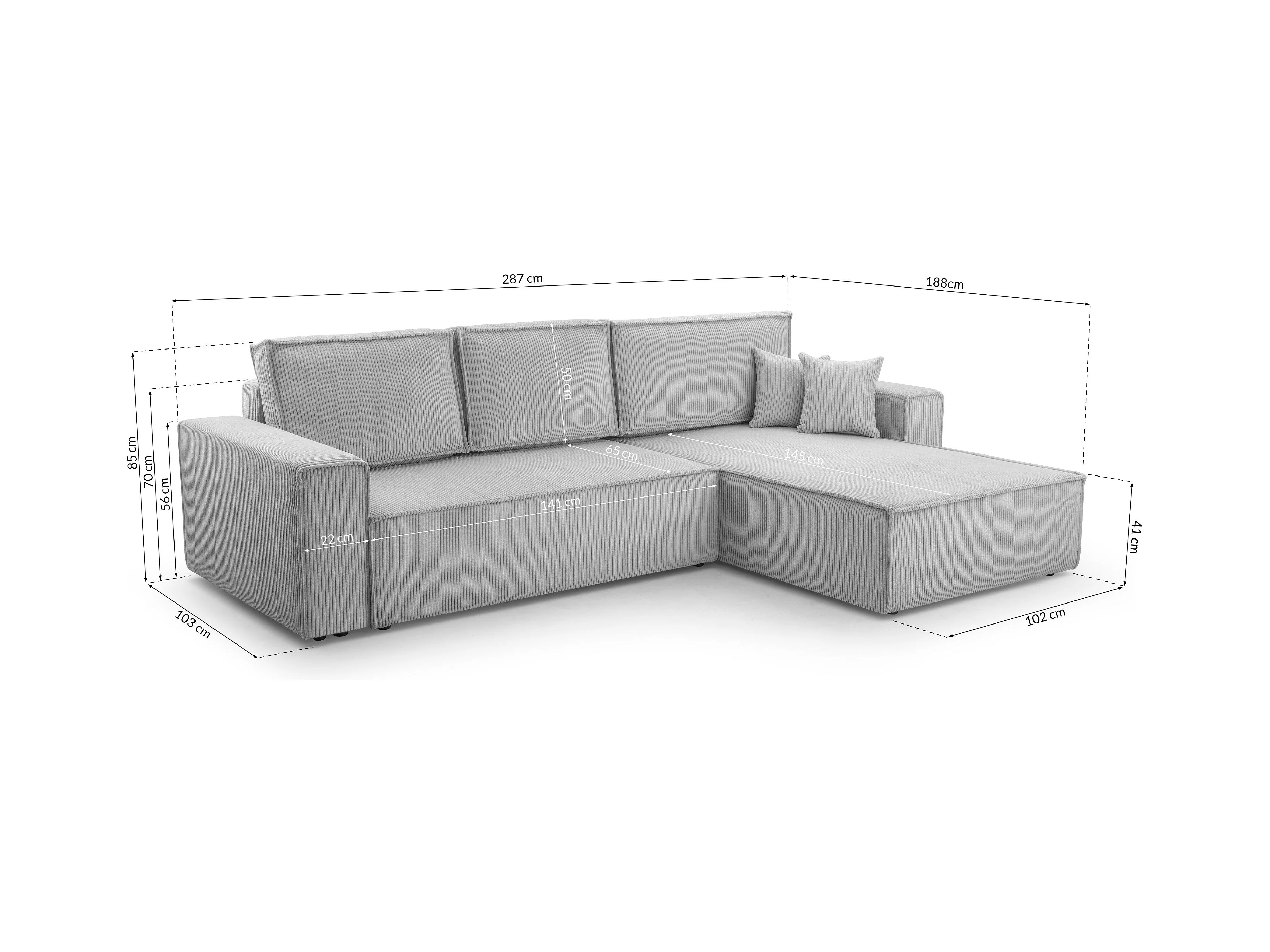 AX LIVING Cord Couch L Form – Cedria L+R Wohnlandschaft 287cm Lavendel