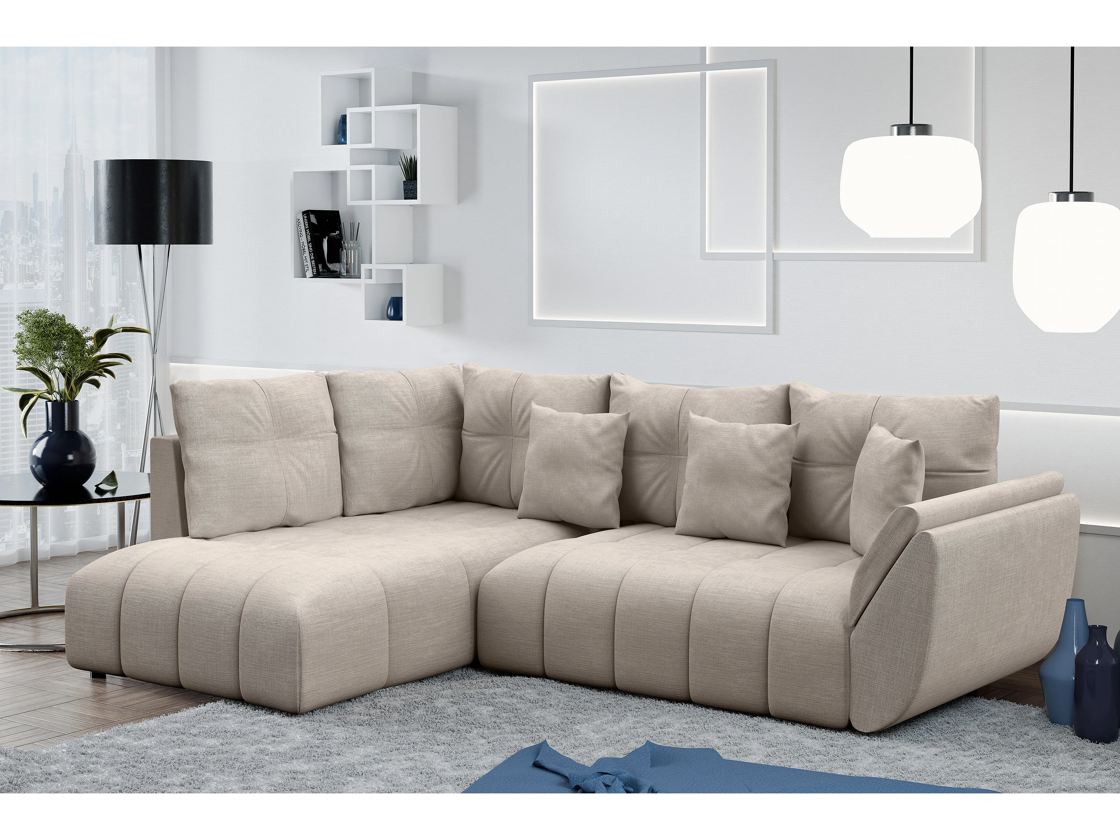 AX LIVING Couch mit Bettfunktion Corleone hellbraune Ecksofa in L Form