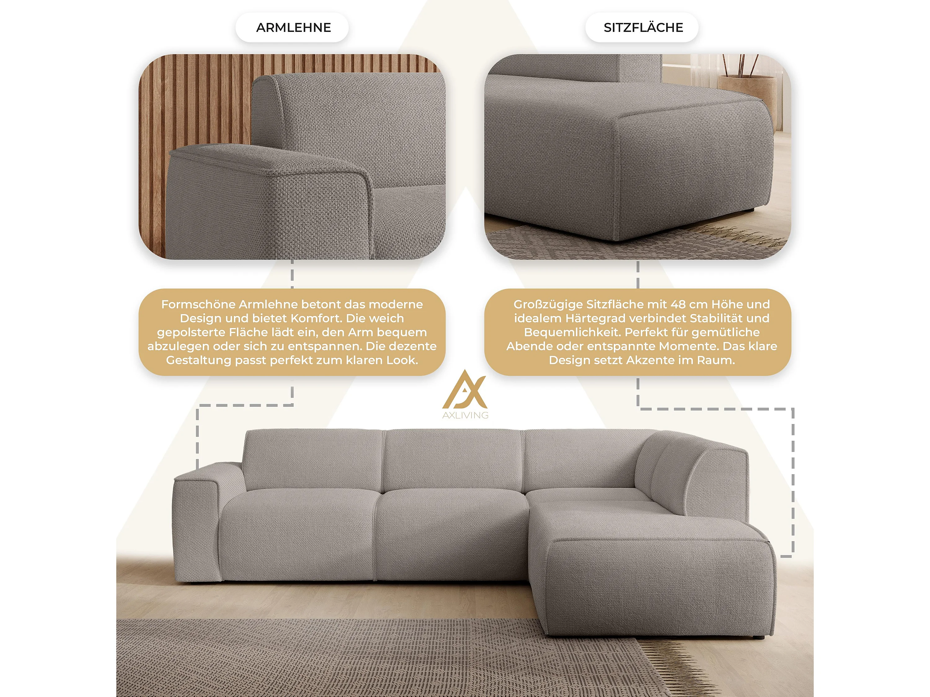 AX LIVING Couch Sofa L Form Didim L Beige – 292 cm, stilvoll & bequem R