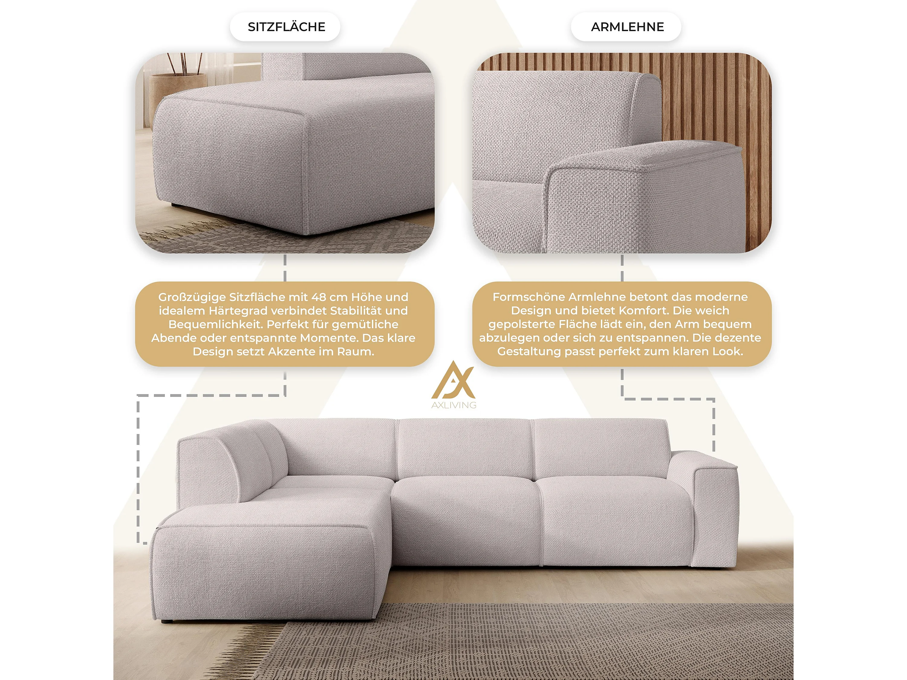 AX LIVING Couch Sofa L Form Didim L Creme – 292 cm, stilvoll & bequem L
