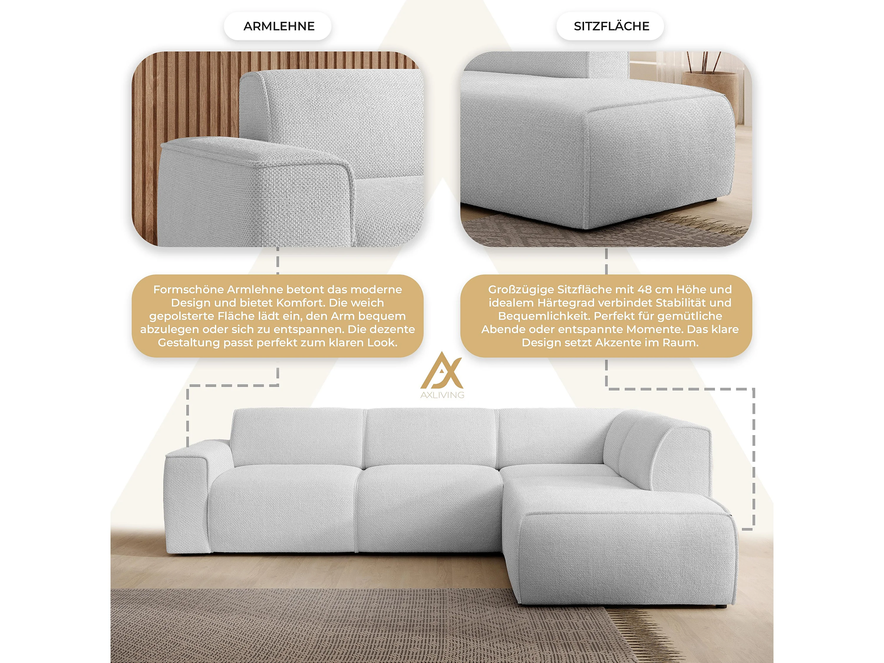 AX LIVING Couch Sofa L Form Didim L Silber 292 stilvoll & bequem R