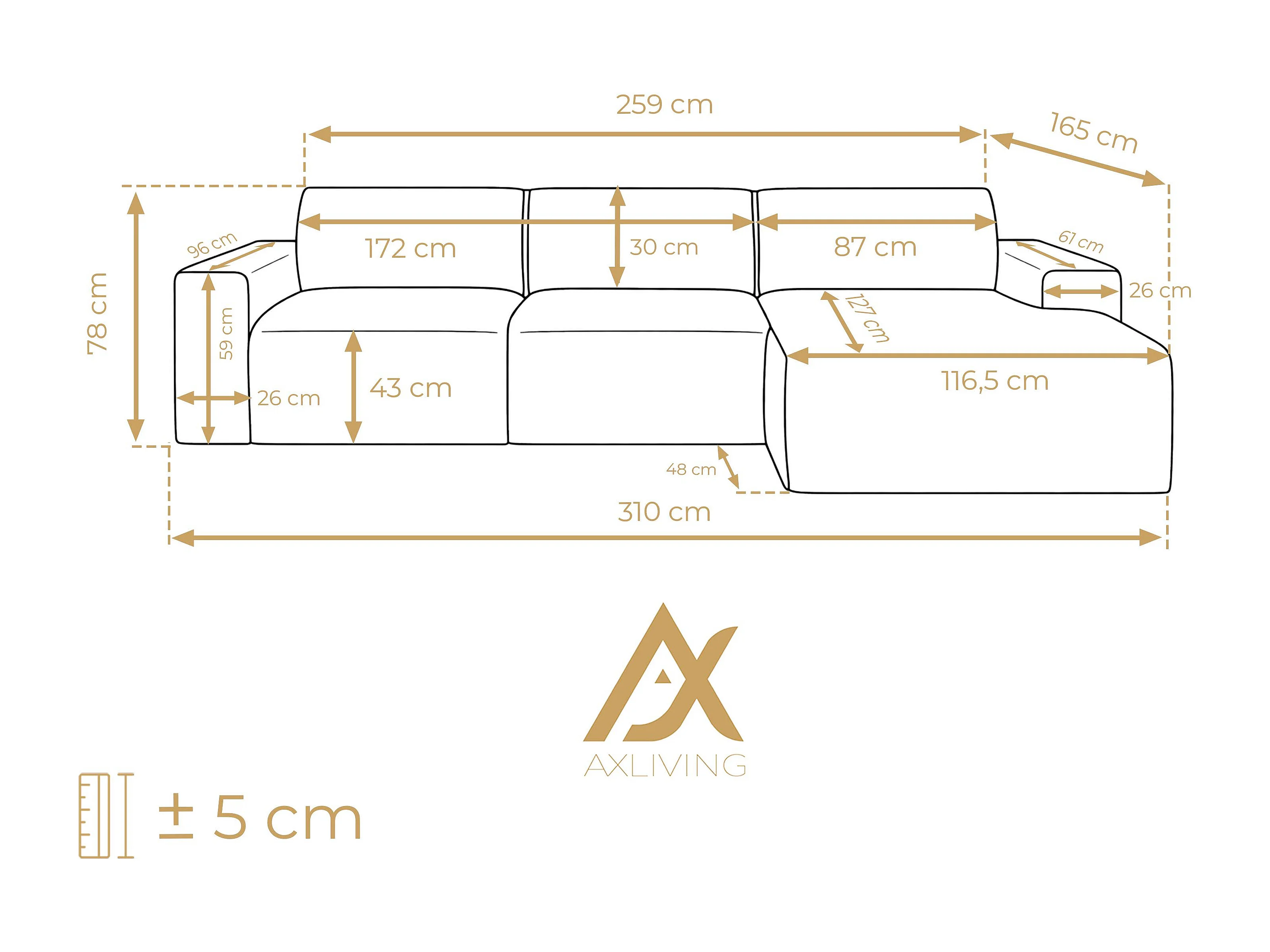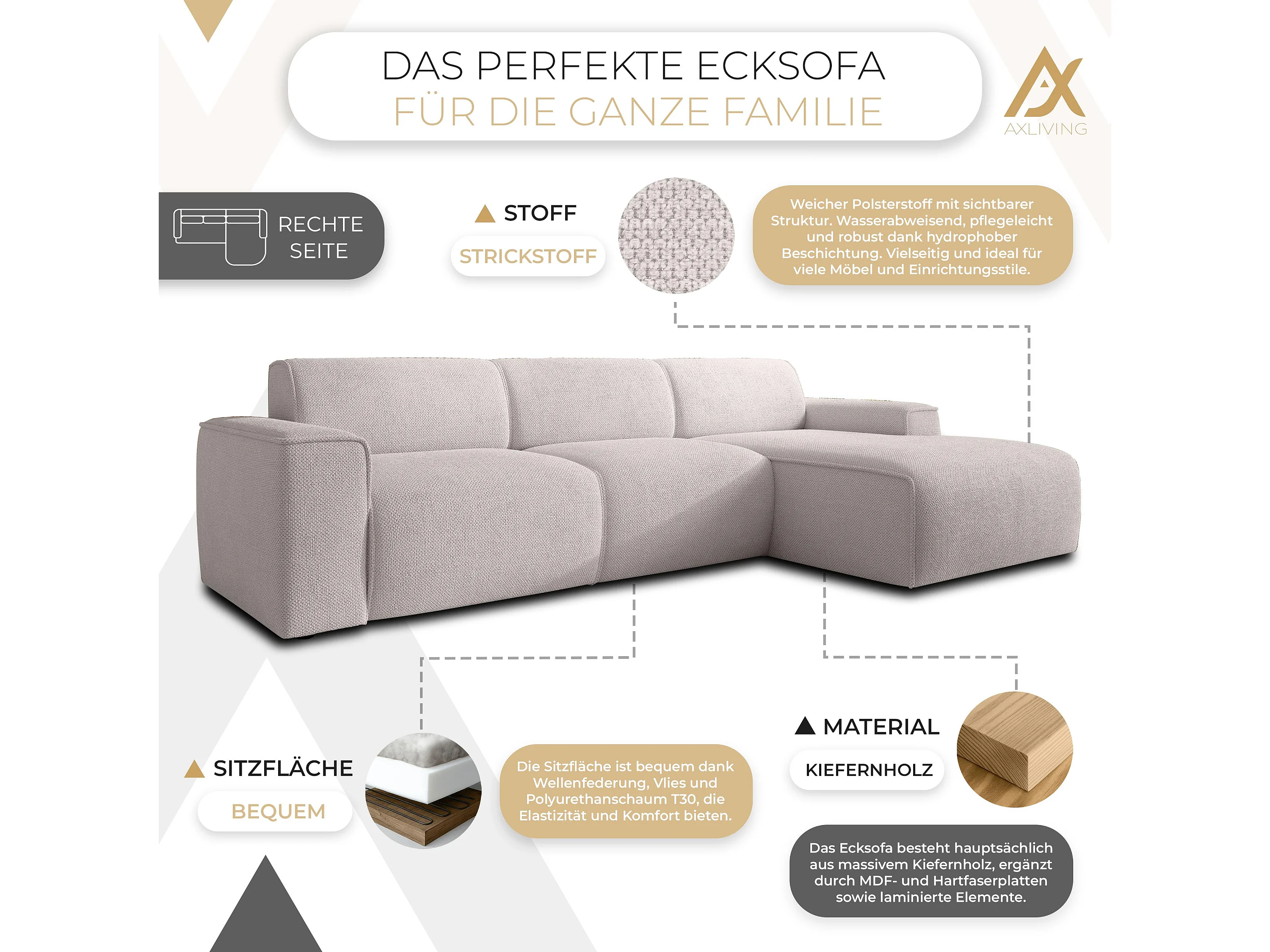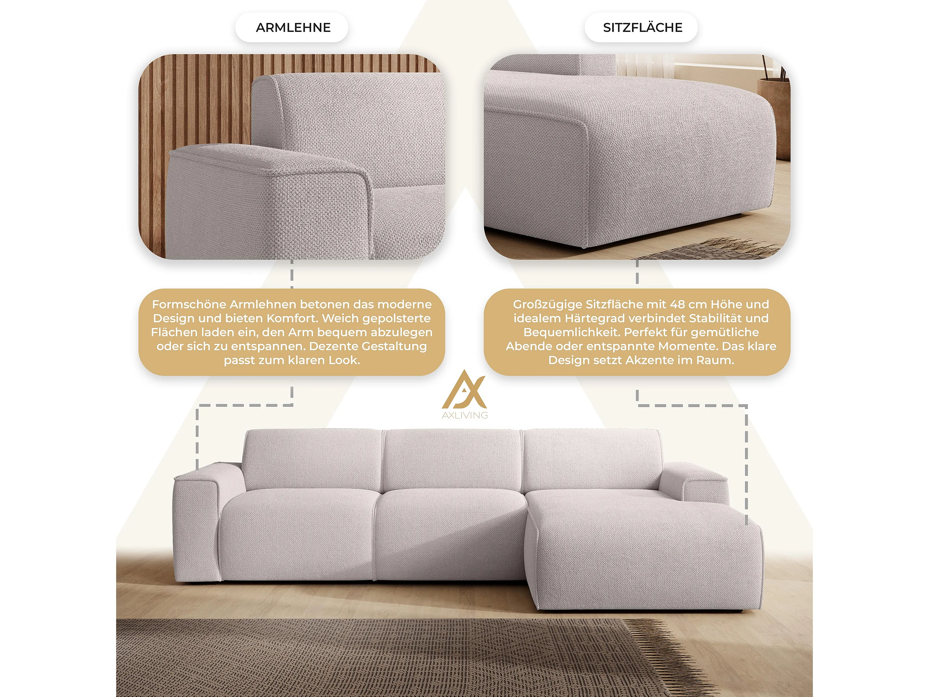 AX LIVING Couch Sofa L Form Didim mini Creme 310 cm breit, stilvoll R