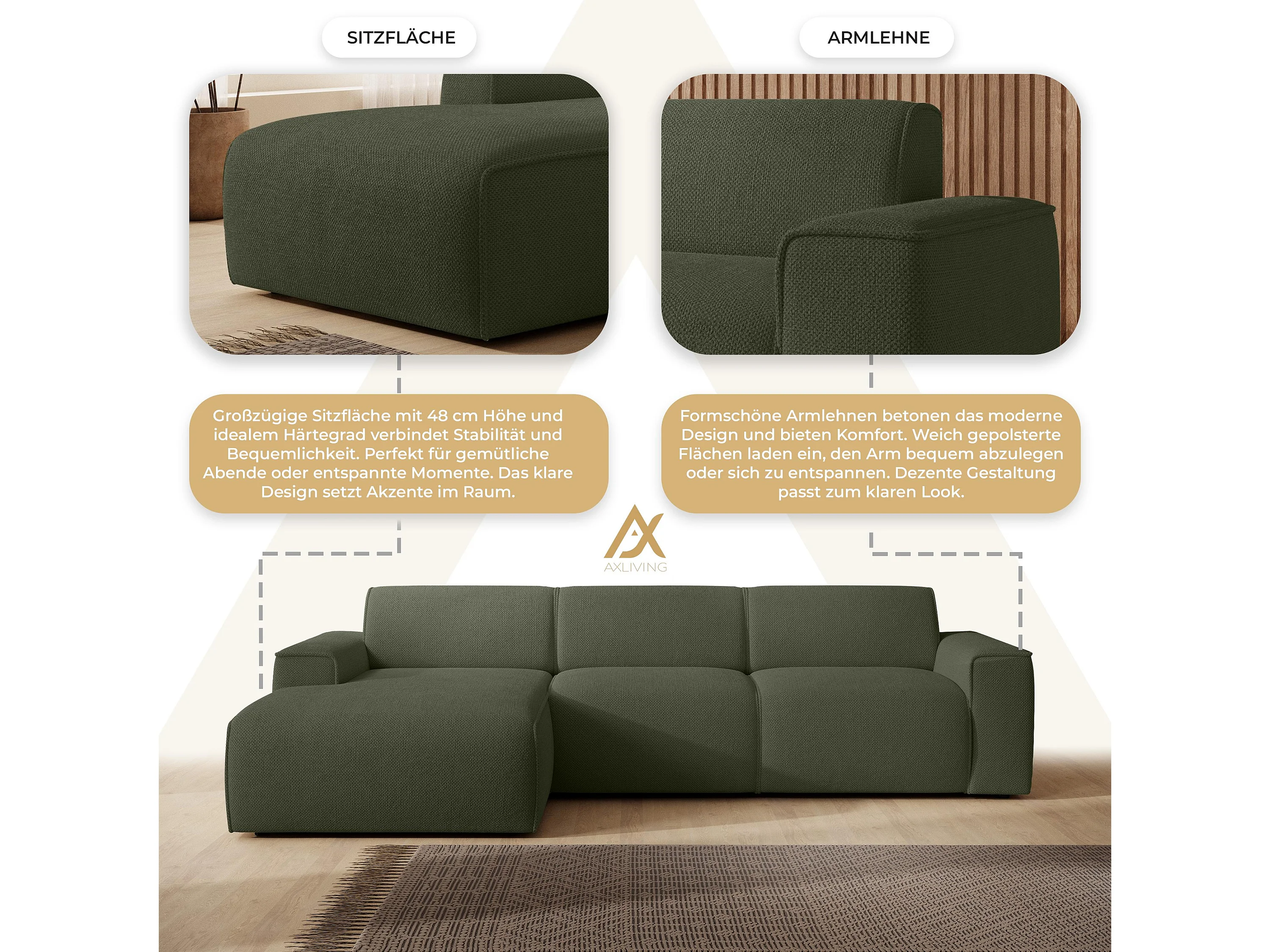 AX LIVING Couch Sofa L Form Didim mini Grün 310 cm breit, stilvoll L