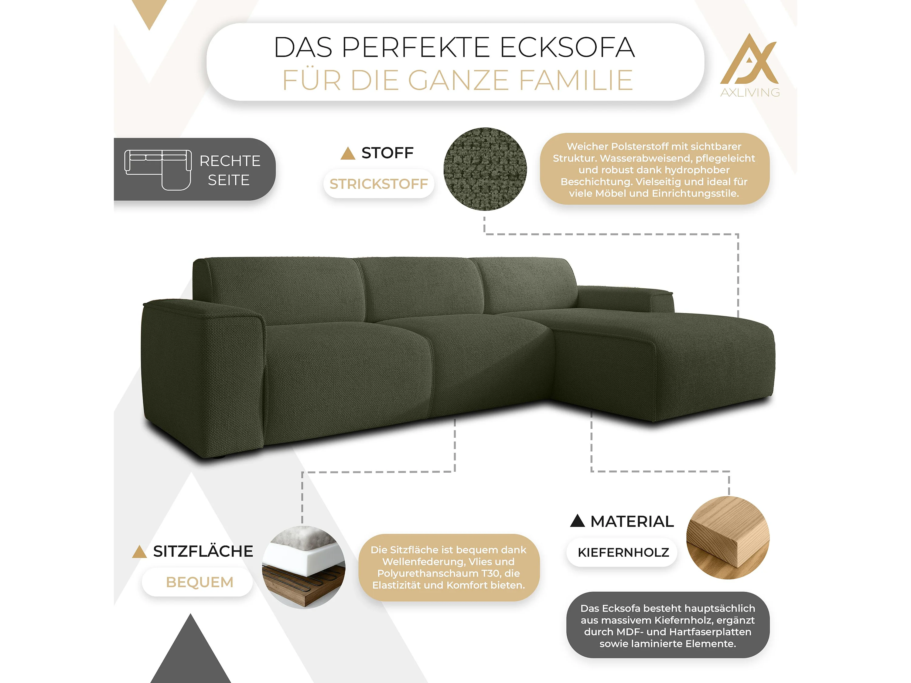 AX LIVING Couch Sofa L Form Didim mini Grün 310 cm breit, stilvoll R