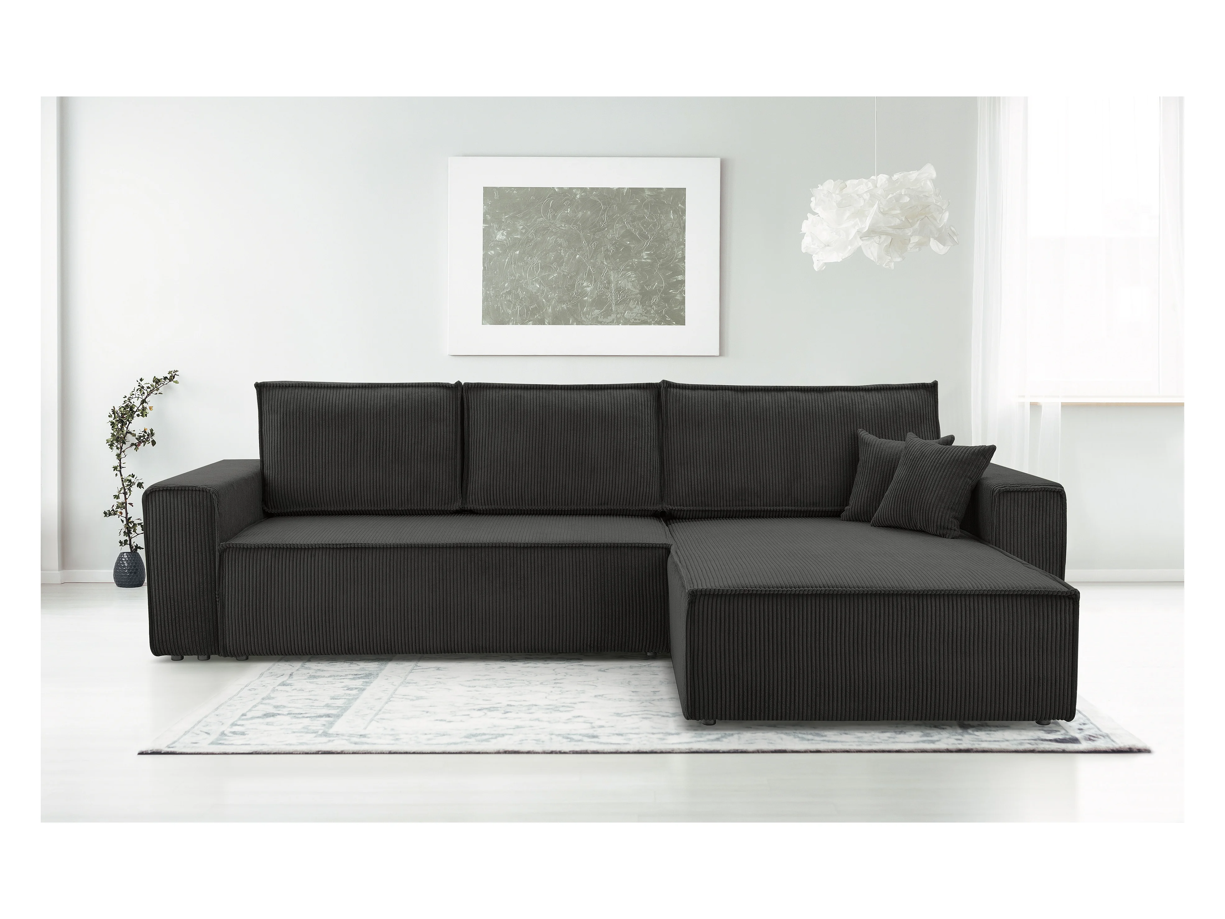 AX LIVING Dunkelgrau Cord Couch L Form – Cedria Wohnlandschaft 287cm