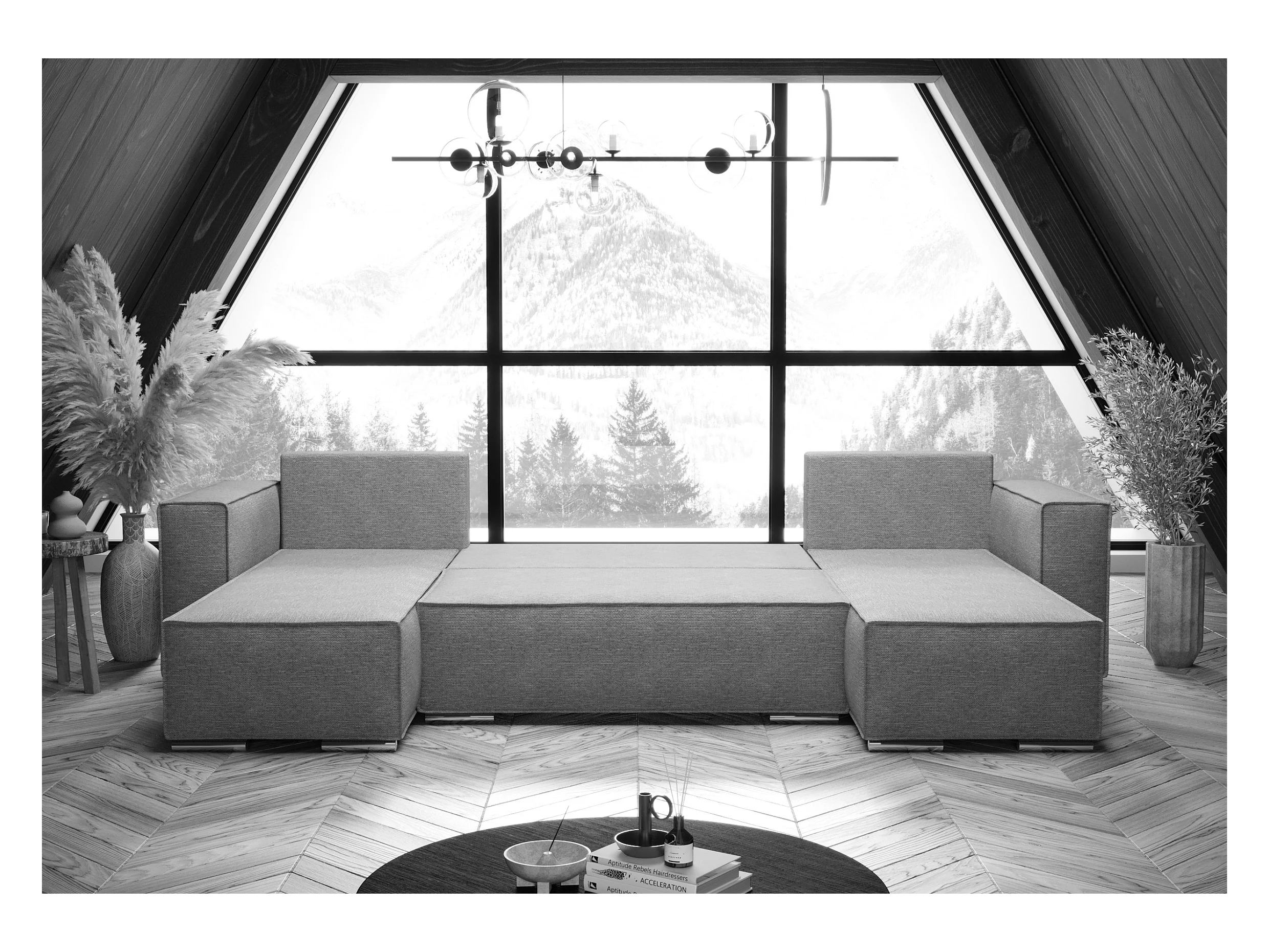 AX LIVING Ecksofa mit Schlaffunktion Dunkelgrau U-Form Vinoria 327 cm