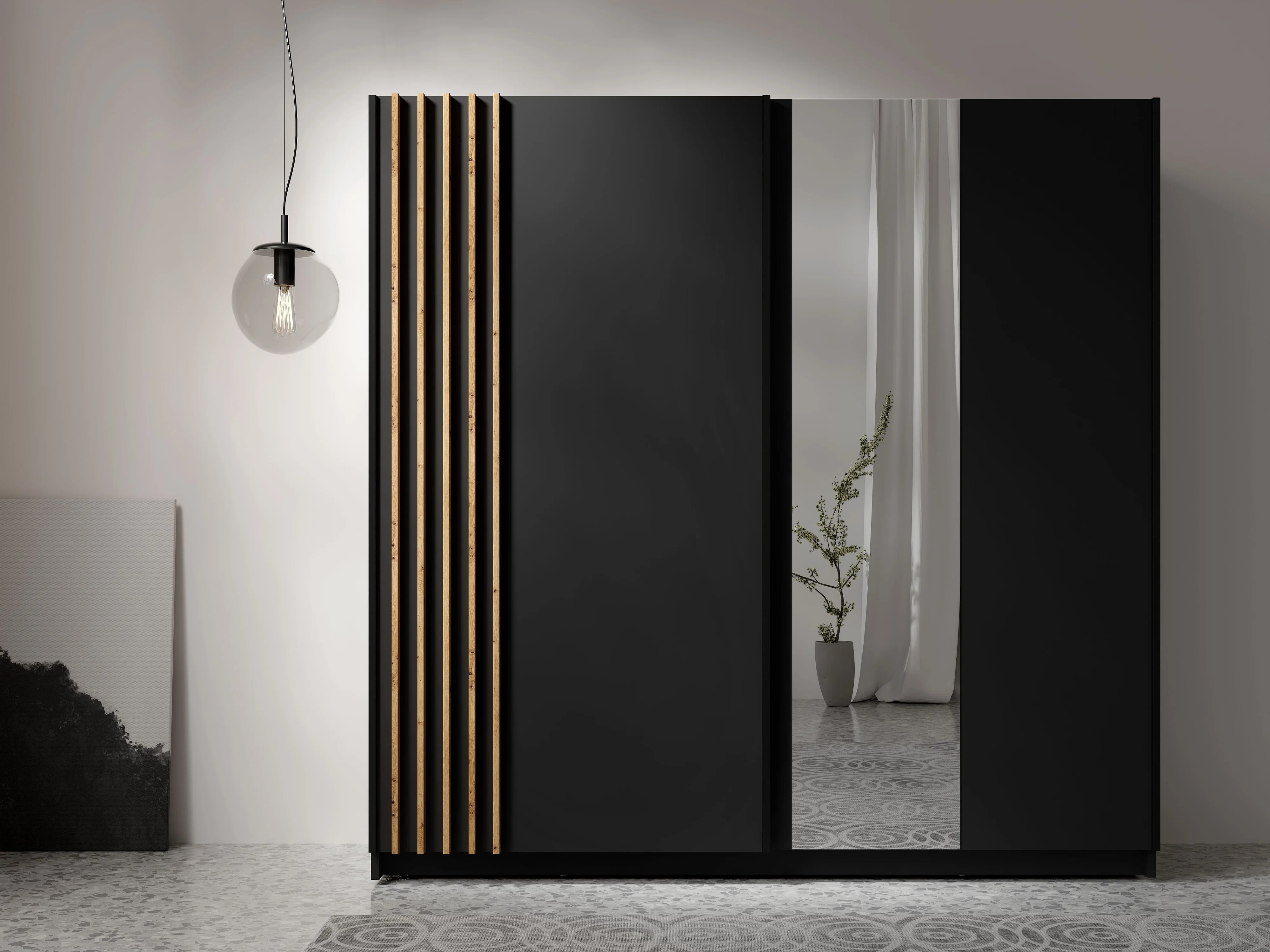 AX Living Kleiderschrank schwarz mit Spiegel 202 cm – Beralto Artisan Lamellen