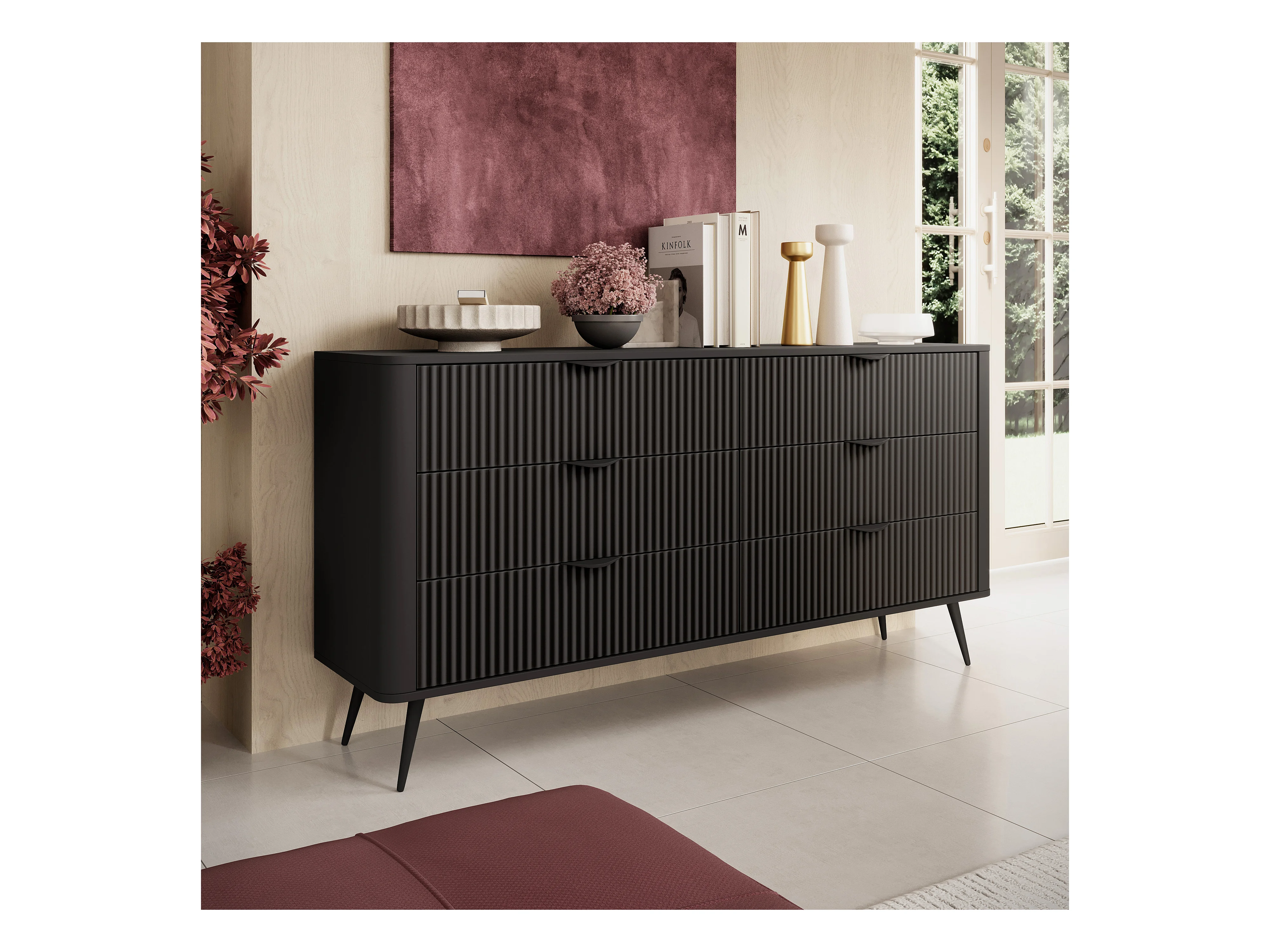 AX LIVING Kommode schwarz mit Schubladen Vespasia 163 6S 163,2cm