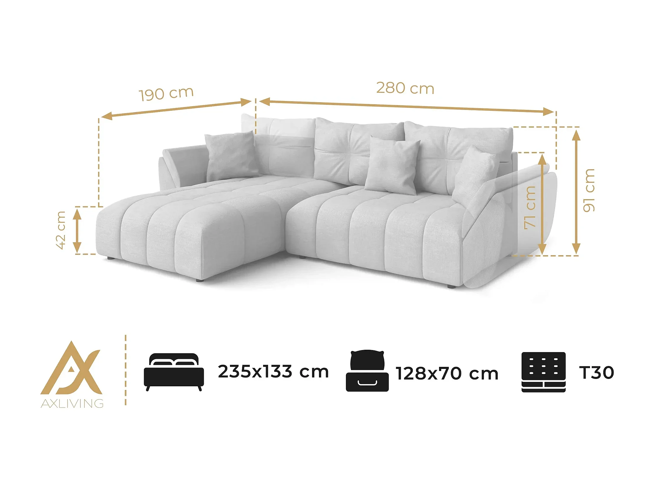 AX LIVING L Form braune Ecksofa Verciani Schlaffunktion Bettkasten 280