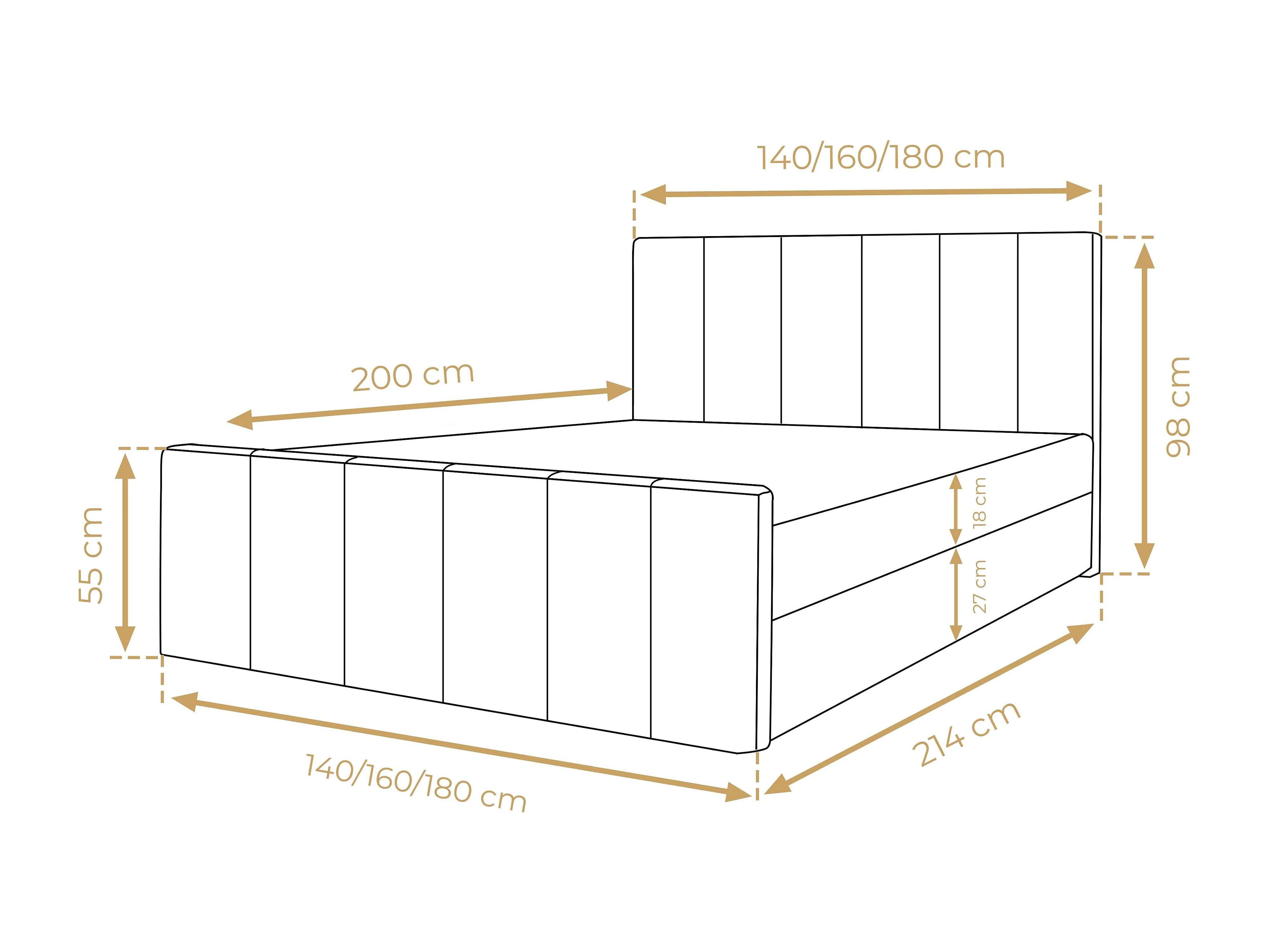 AX LIVING Levente Boxbett mit Bettkasten 160x200 graues Boxspringbett