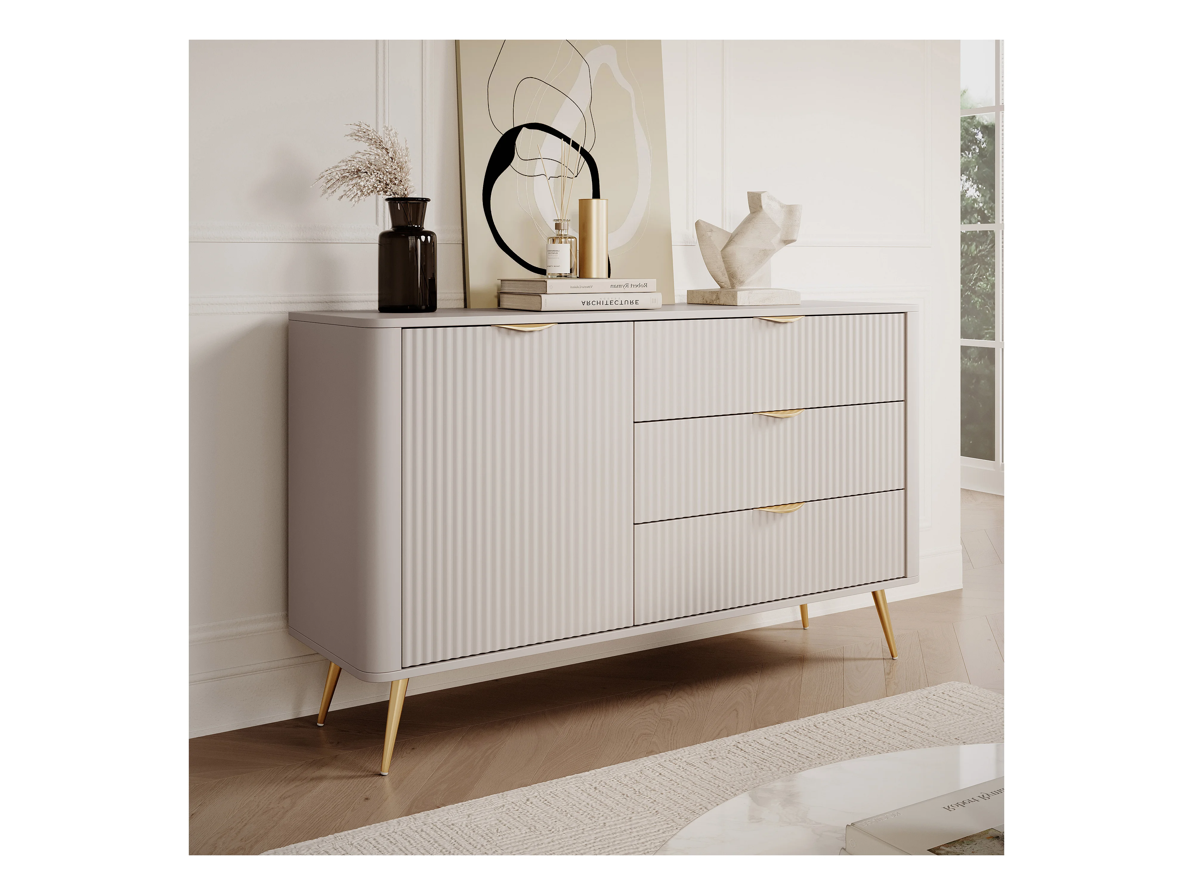 AX LIVING Modern Schubladen Sideboard Vespasia 138 D3S – 138,2cm Beige