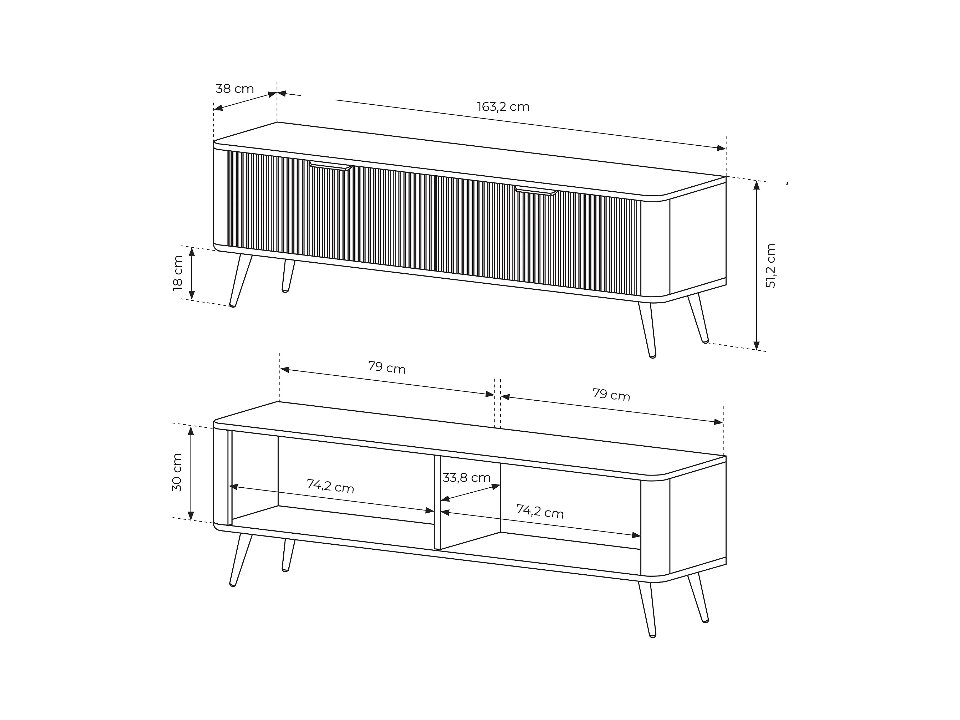 AX LIVING Moderner TV Board schwarz matt Vespasia 163 2D 163cm Breite