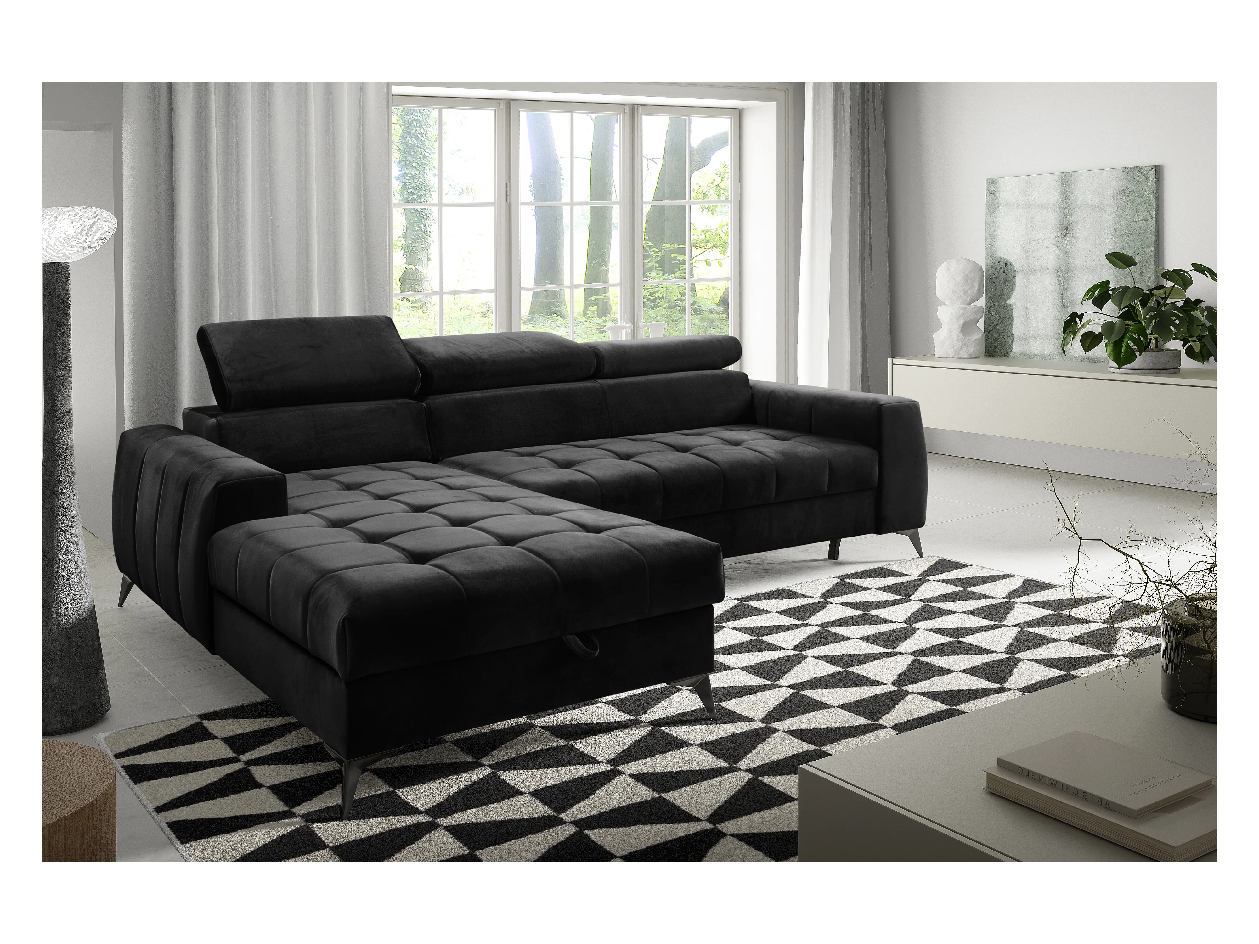 AX LIVING Schwarze Eckcouch mit Schlaffunktion Arkucio Mini 260 cm L