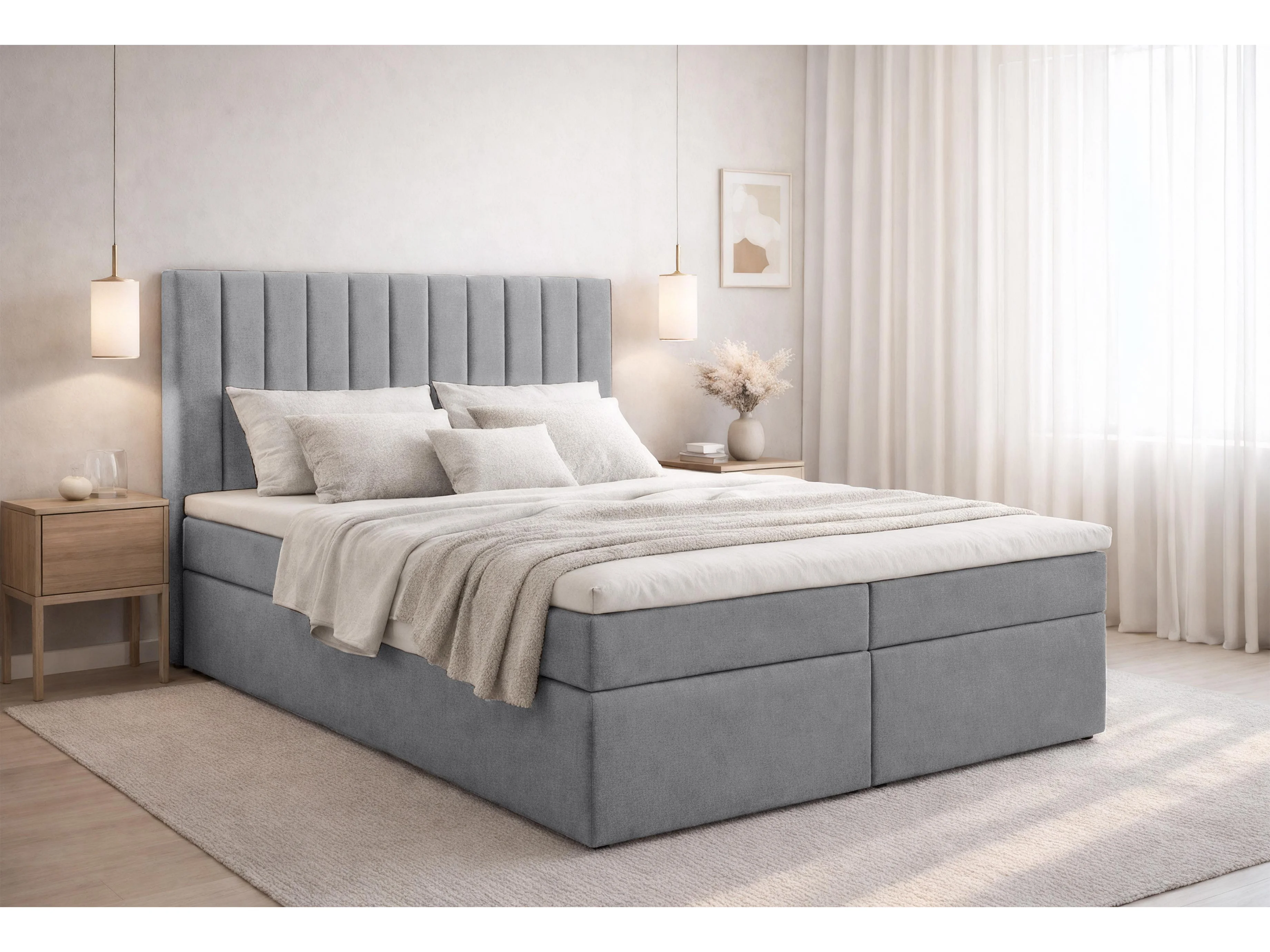 AX LIVING Stauraum Boxspringbett Grau 180x200 cm mit Topper Bursa Doppelbett