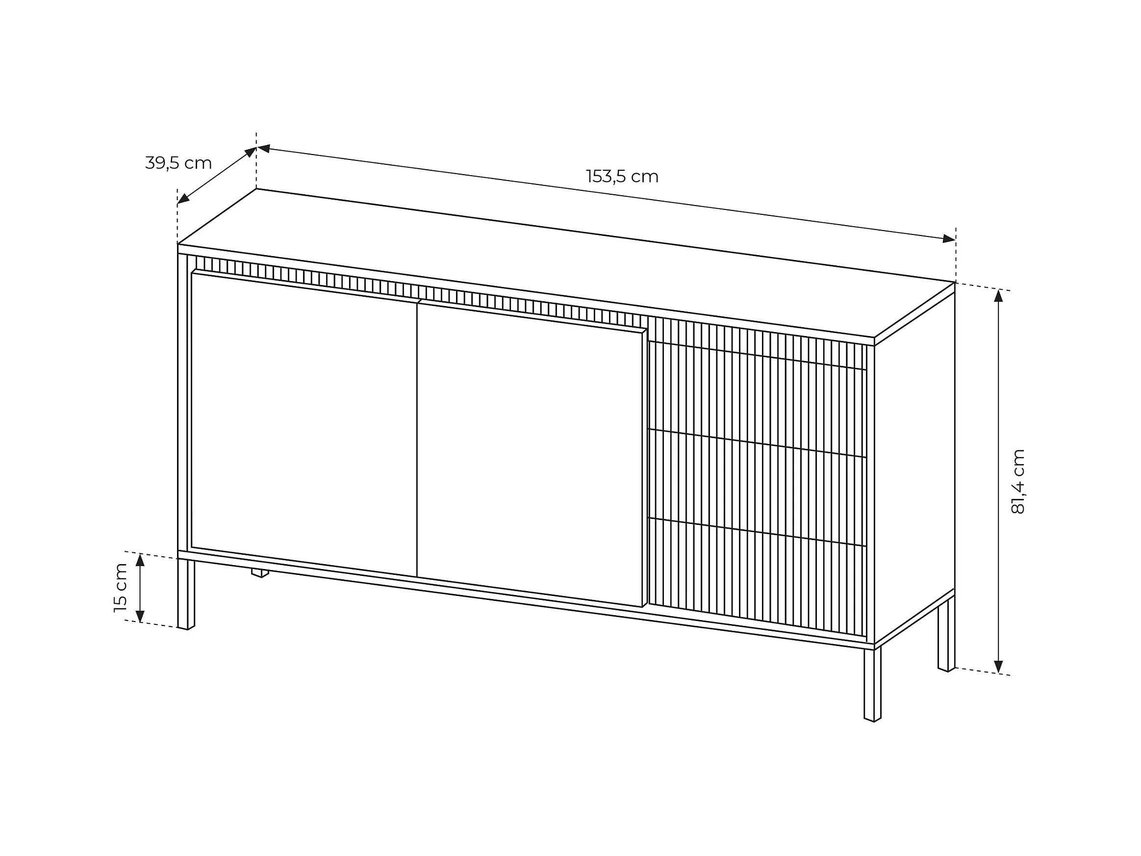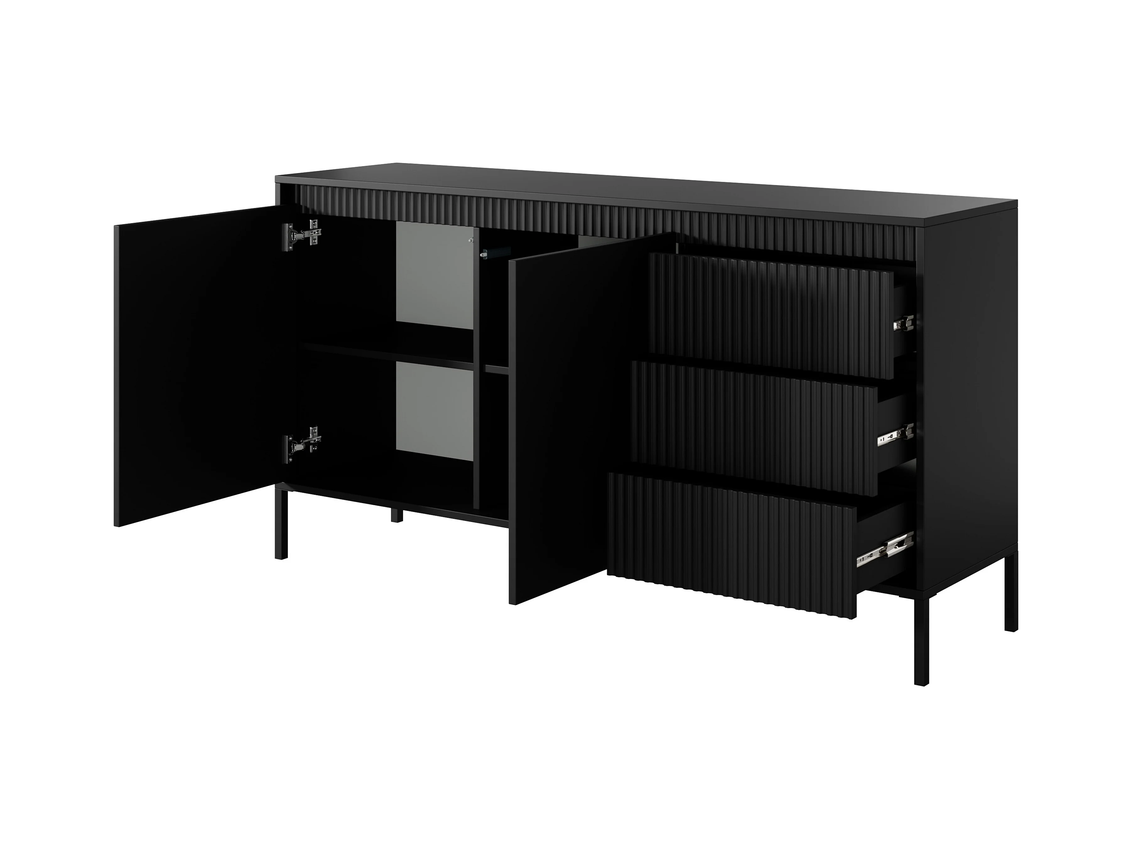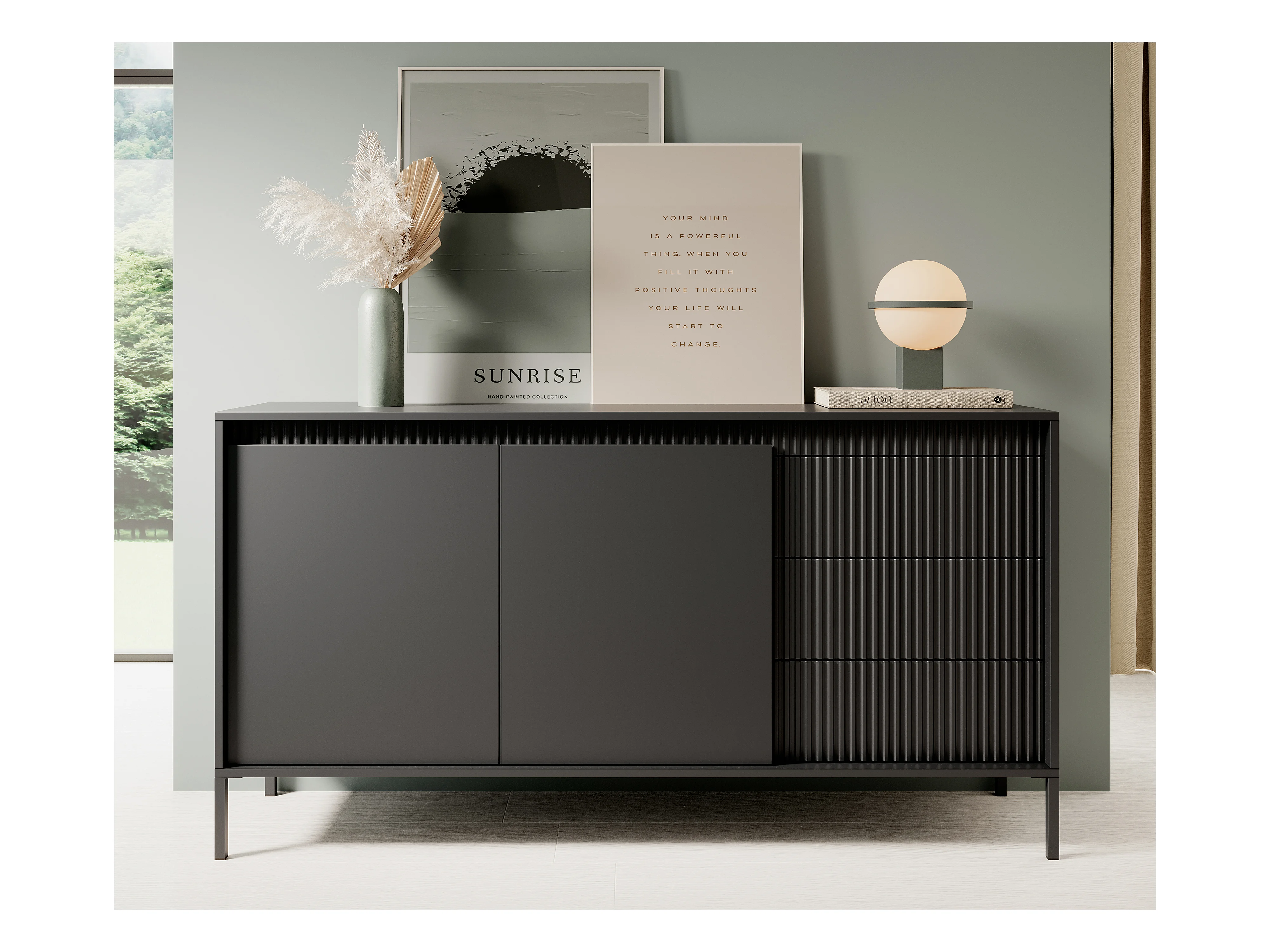 AX LIVING Trentinis 153 2D3S Schwarzes Sideboard, 153,5 cm geriffeltes