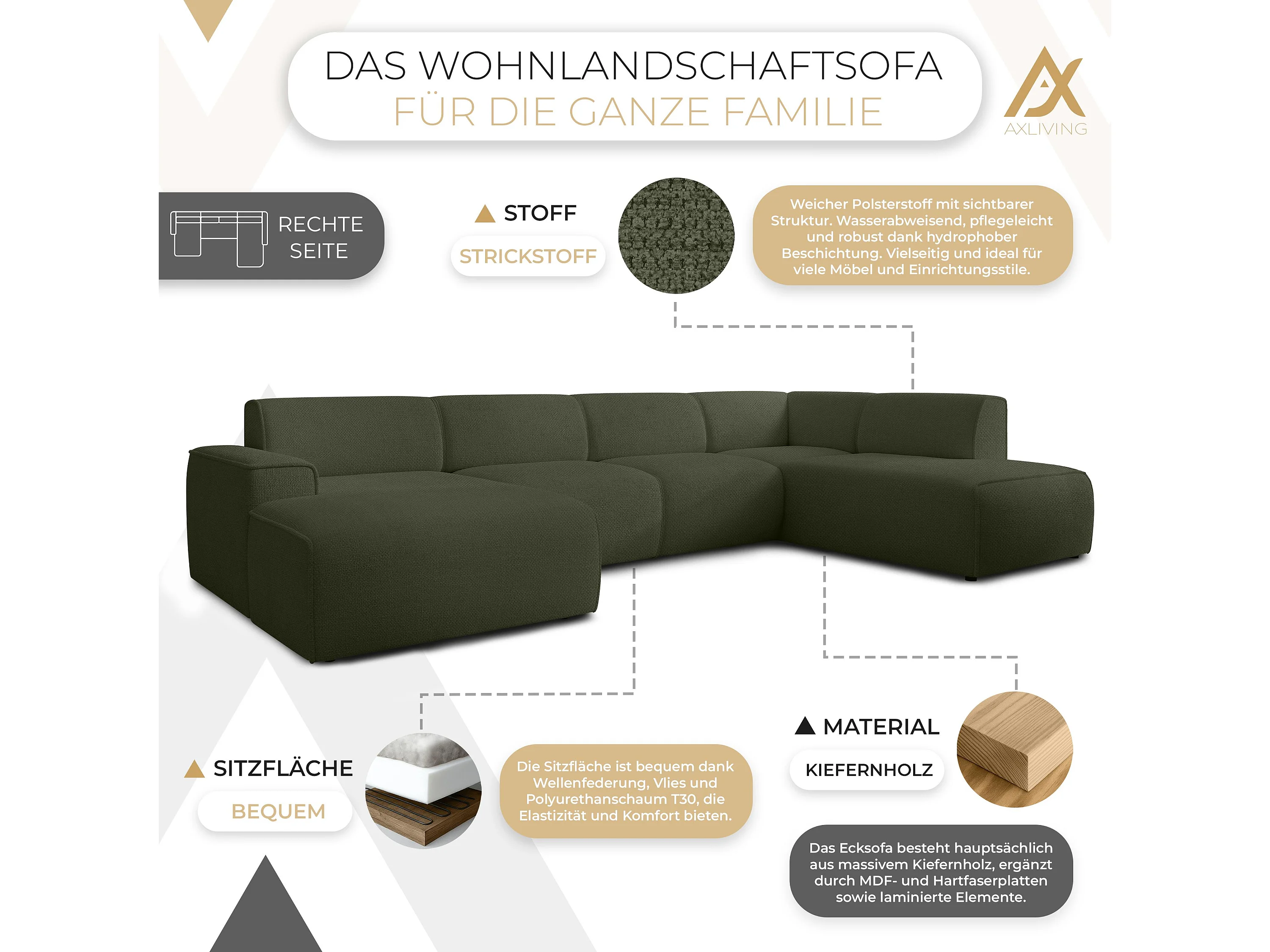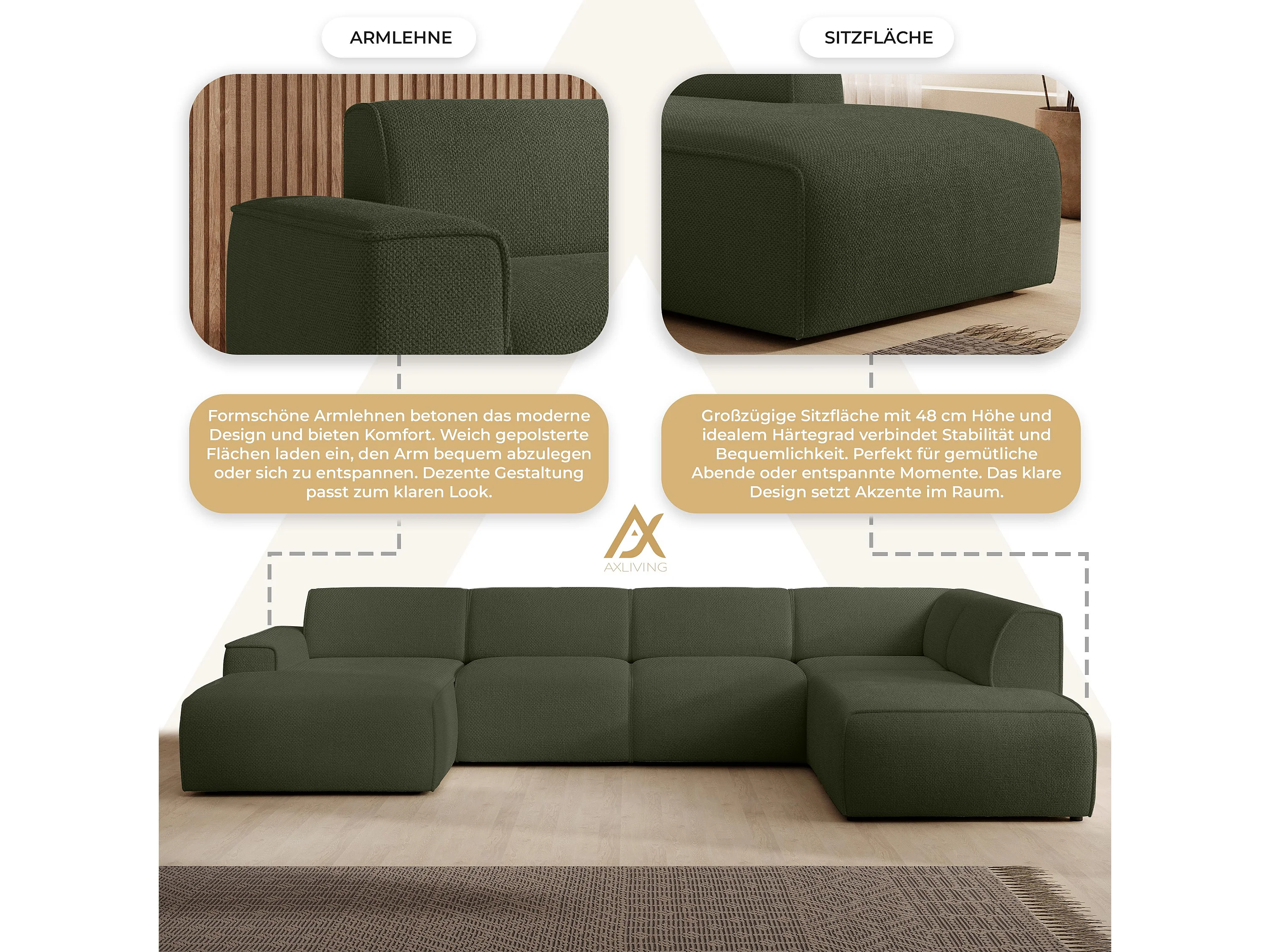 AX LIVING XXL Sofa U Form Didim Grün 378cm breit modern & großzügig R