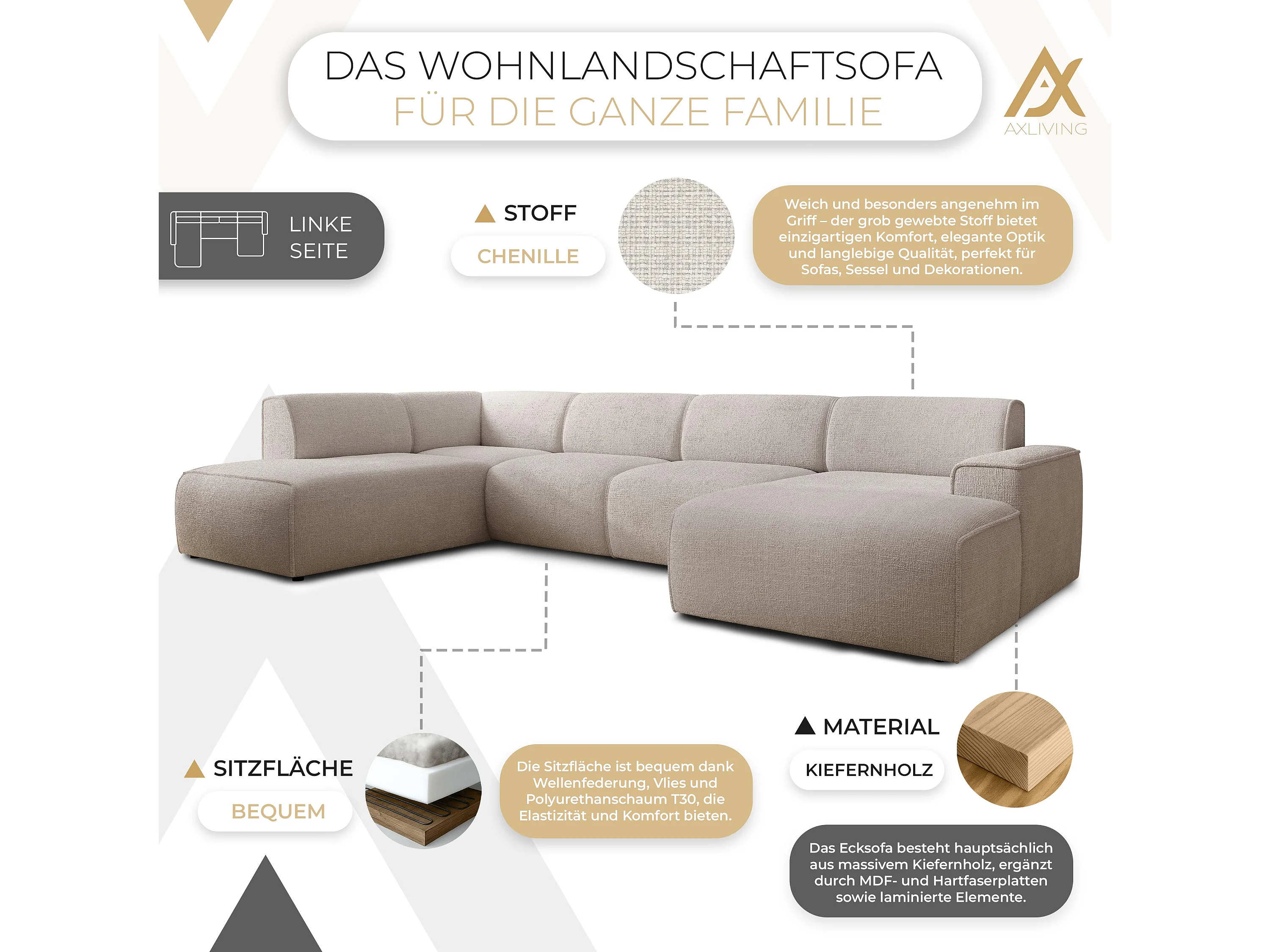 AX LIVING XXL Sofa U Form Didim Ivory 378cm breit modern & großzügig L