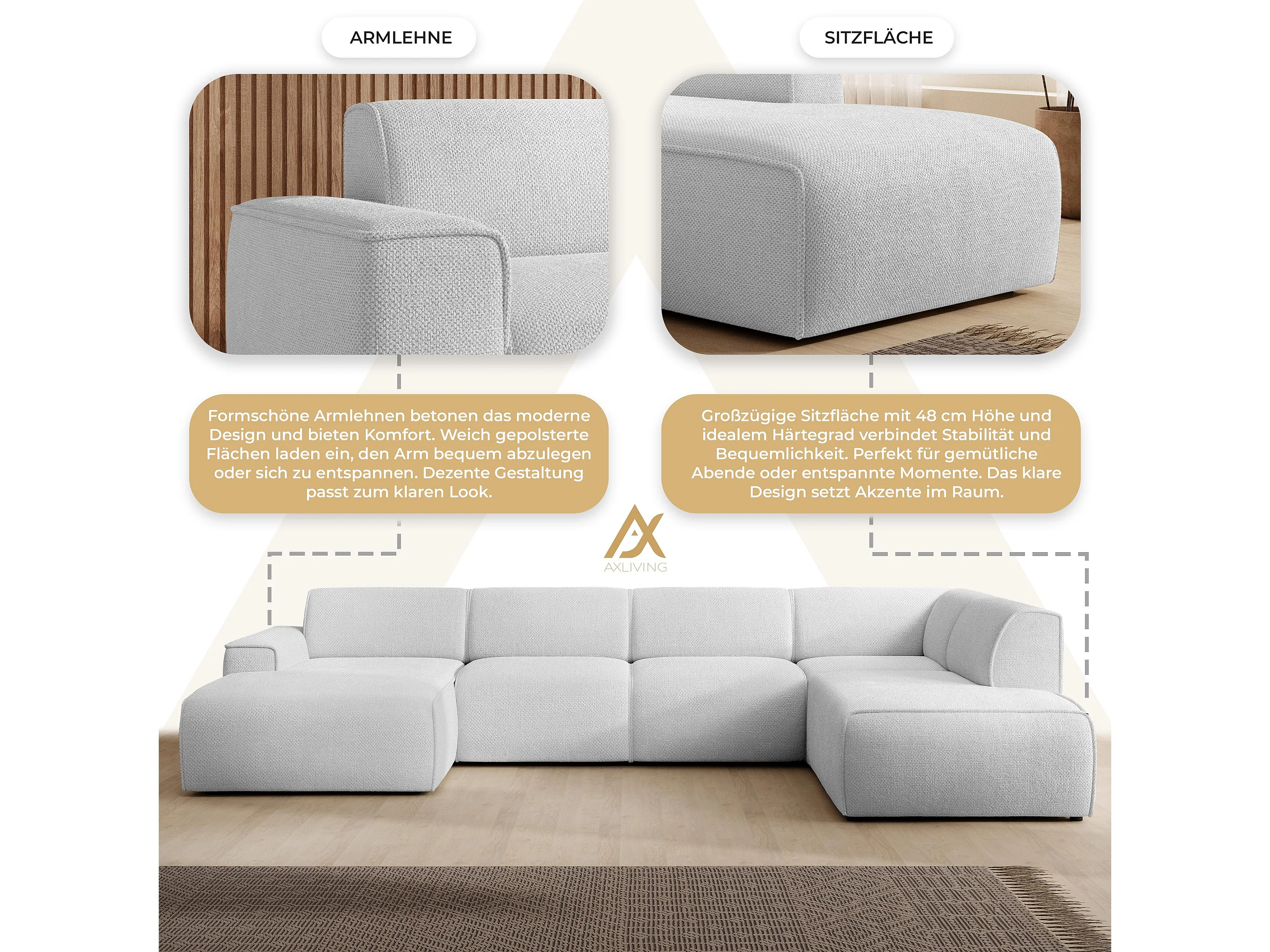 AX LIVING XXL Sofa U Form Didim Silber 378 cm modern & großzügig R