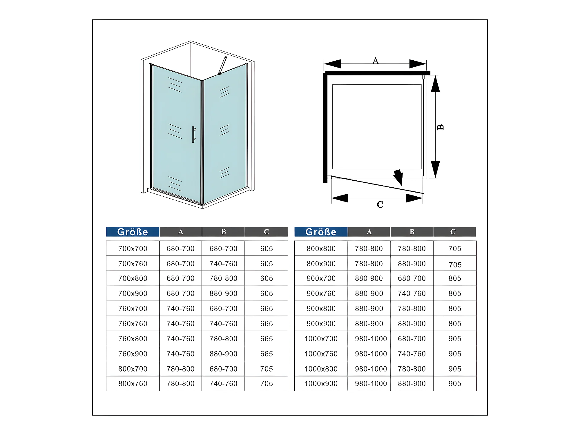 B:100xT:100x195cm Nischentür Drehtür Seitenwand Duschabtrennung Duschkabine 6mm NanoGlas