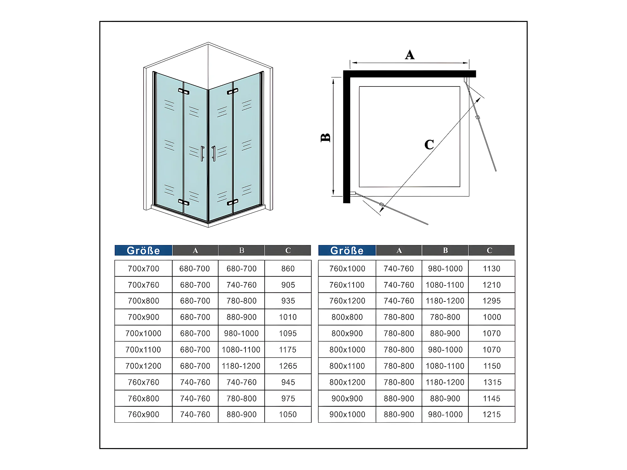 B:110xT:70x185cm Falttür Drehtür Eckeinstieg Duschabtrennung Duschkabine Dusche