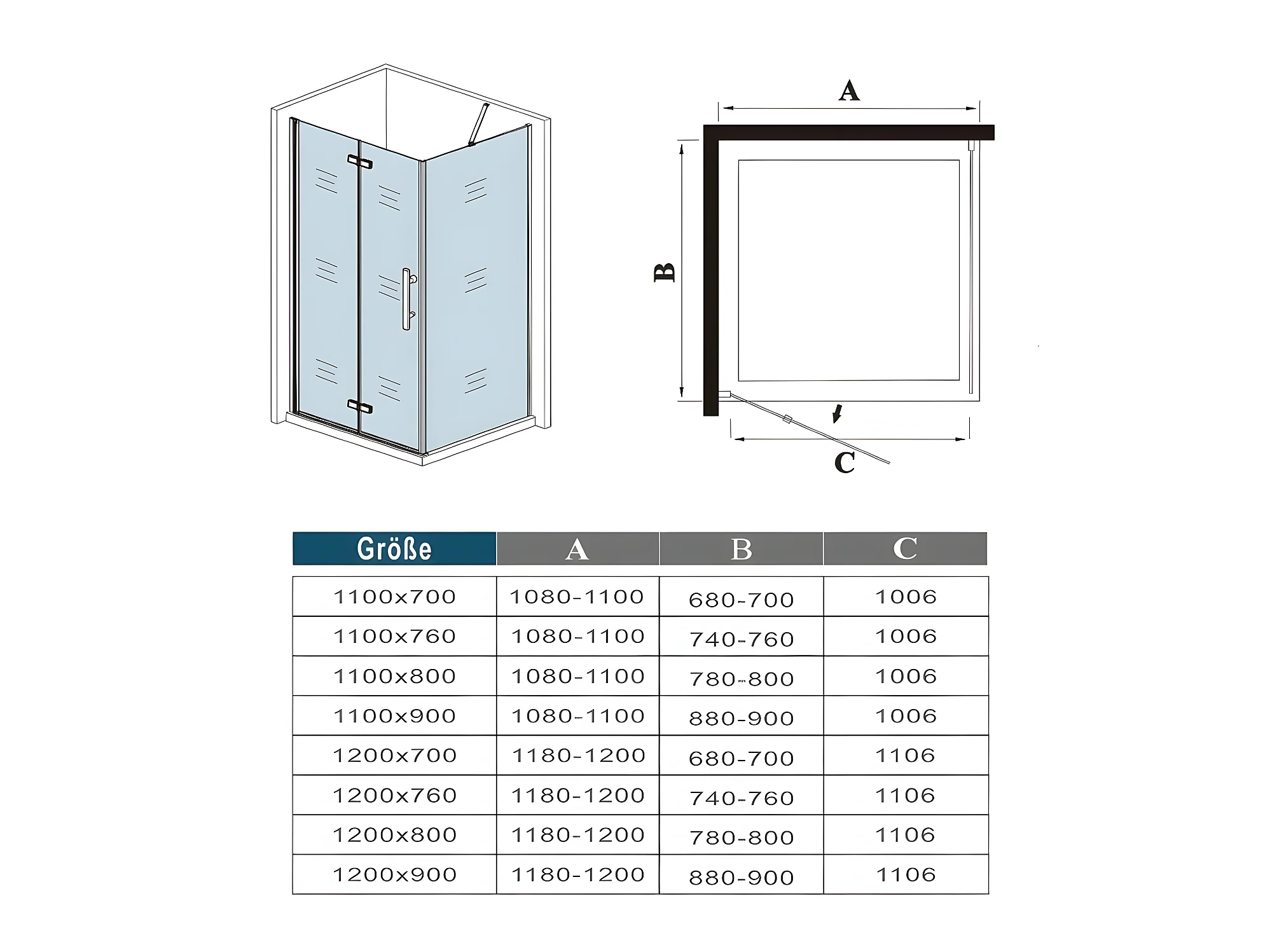 B:110xT:80x185cm Falttür Drehtür Eckeinstieg Duschabtrennung Duschkabine Dusche