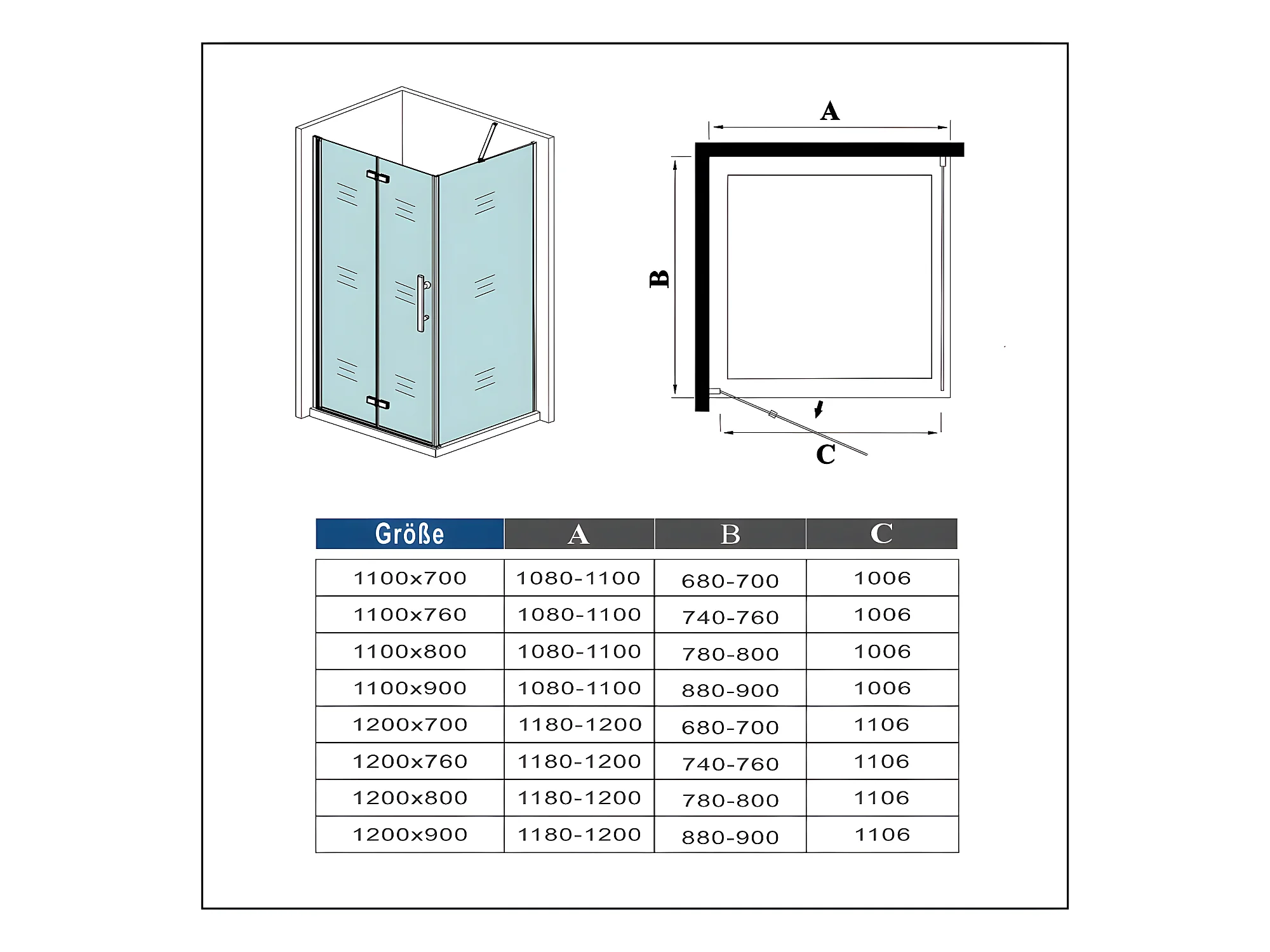 B:120xT:70x185cm Falttür Drehtür Eckeinstieg Duschabtrennung Duschkabine Dusche