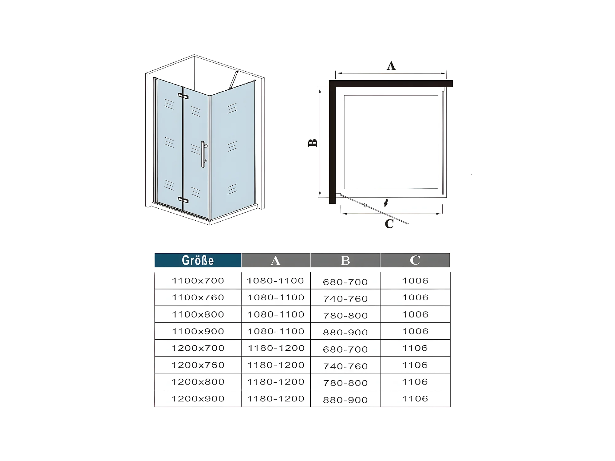 B:80xT:100x185cm Falttür Drehtür Eckeinstieg Duschabtrennung Duschkabine Dusche