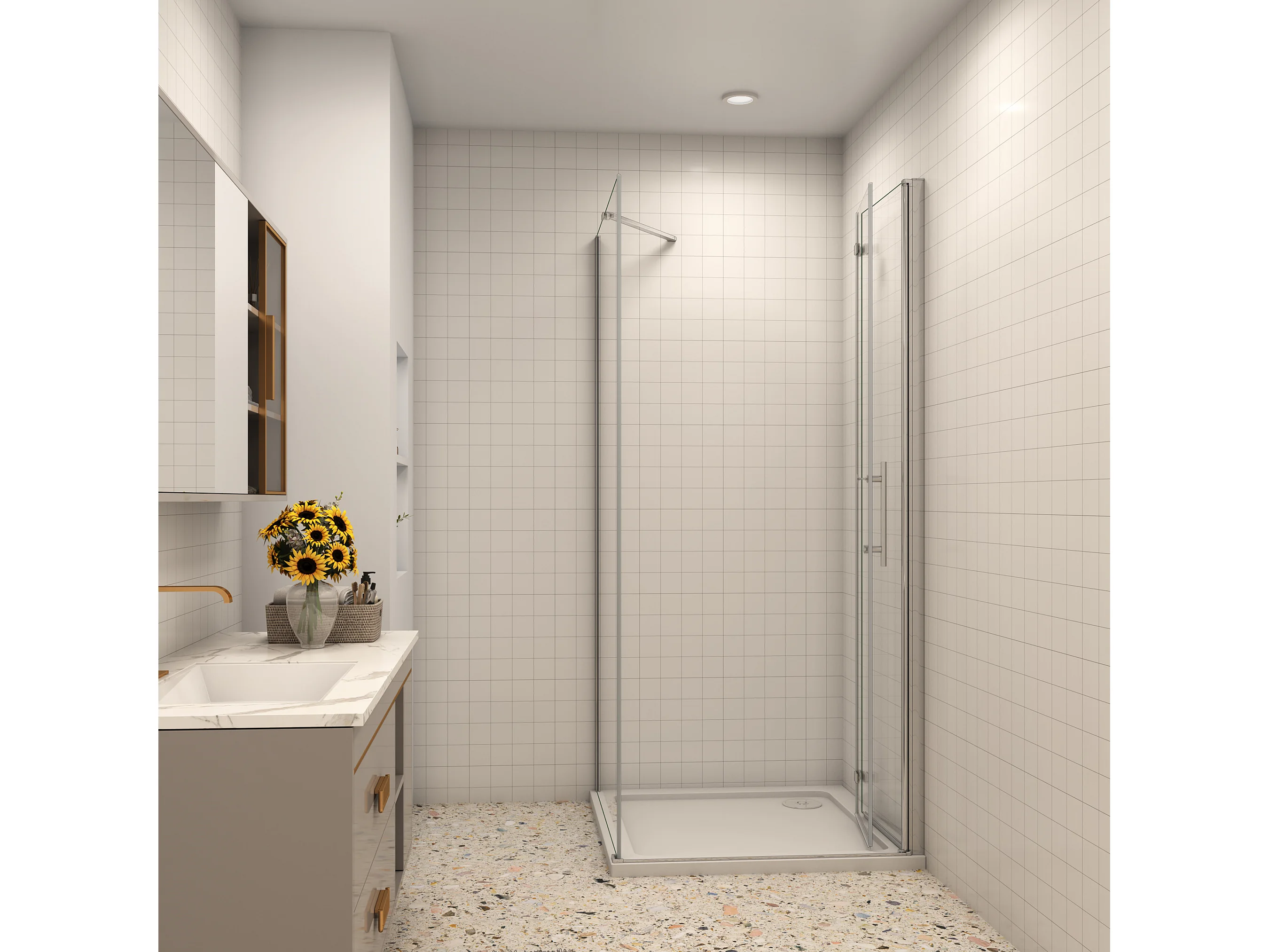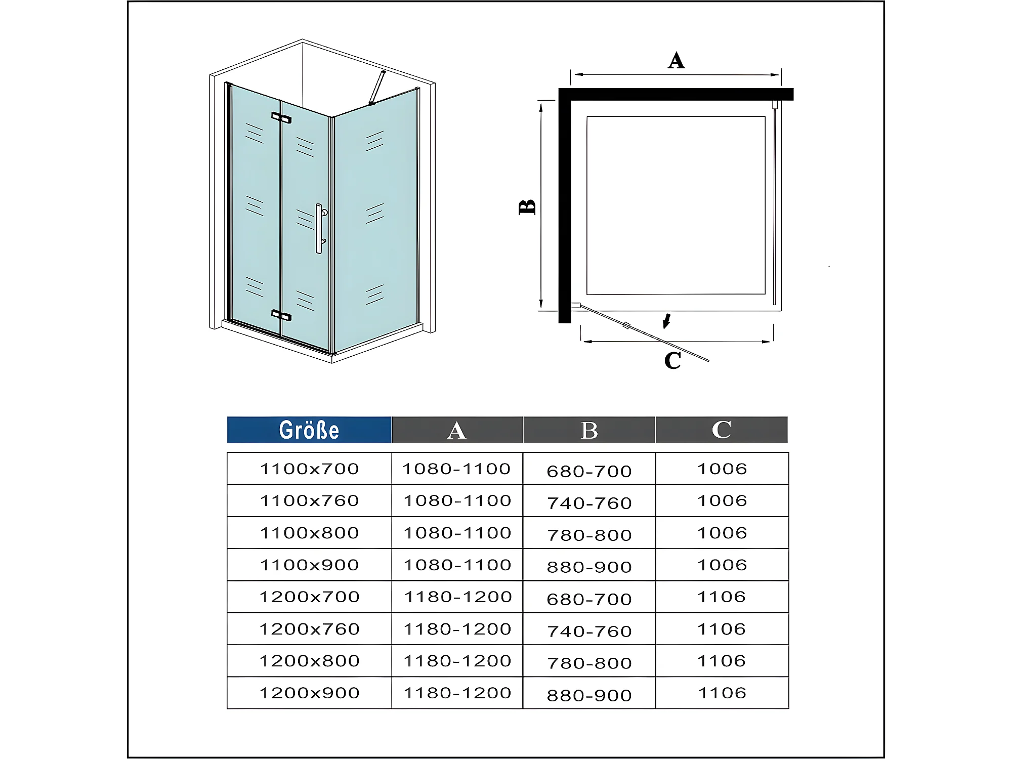 B:90xT:100x185cm Falttür Drehtür Eckeinstieg Duschabtrennung Duschkabine Dusche
