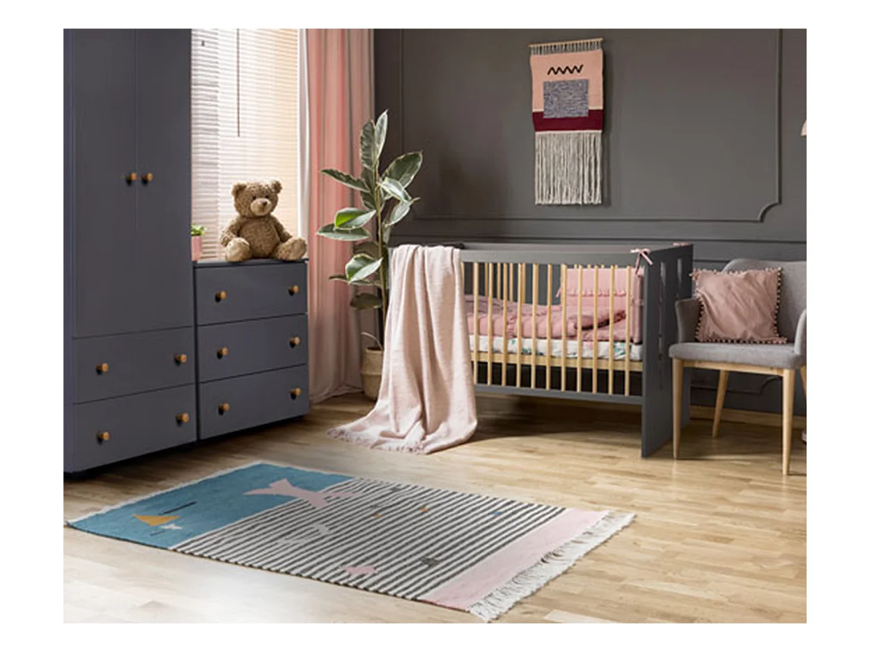 BABYBETT Pauline graphit / Kiefer / weiß 124 / 85 / 66cm