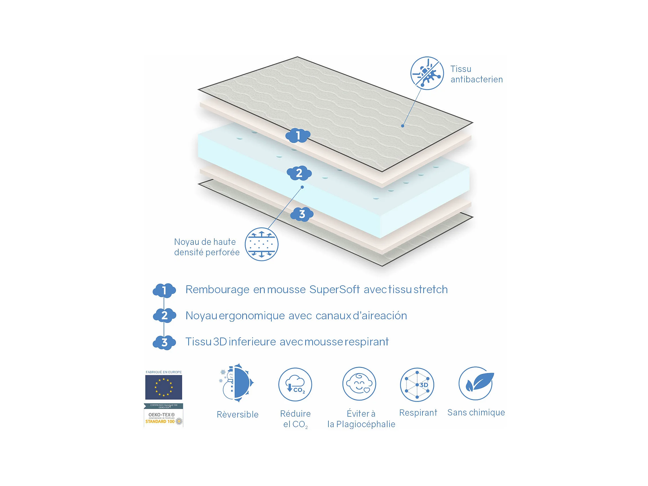 Babybettmatratze 67X137 CLOE Höhe 10 cm Perforierter Schaumstoffkern