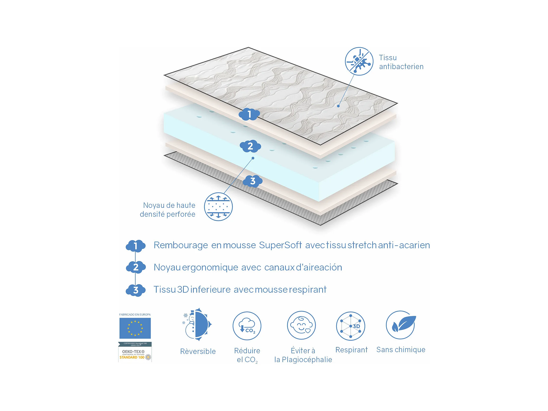 Babymatratze COT 67X137 EKO BABY Höhe 14 CM, Perforierter und atmungsaktiver Schaumkern