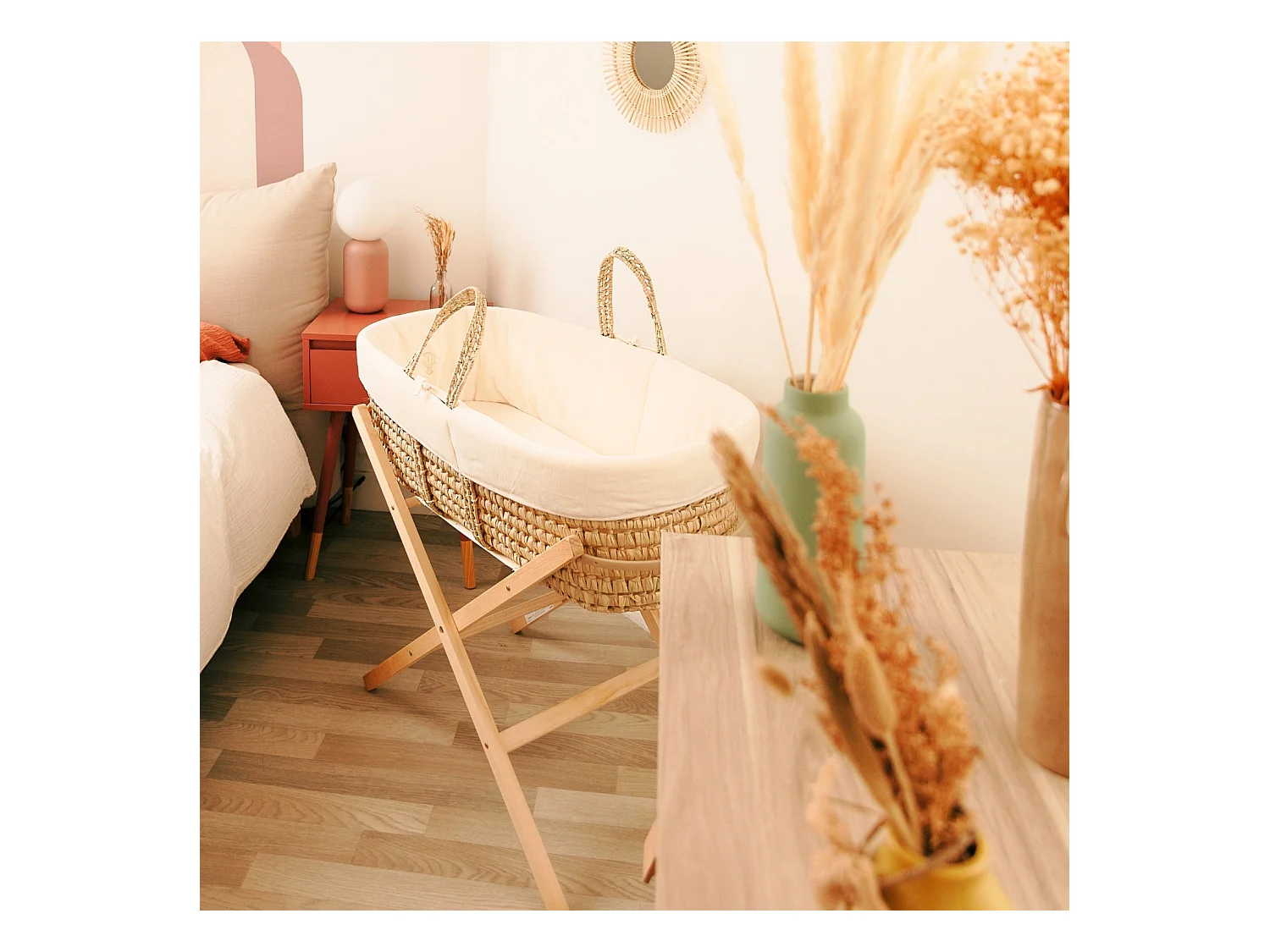 Babywanne mit klappbarem Holzgestell, Bezug aus Bio-Baumwolle - Wald