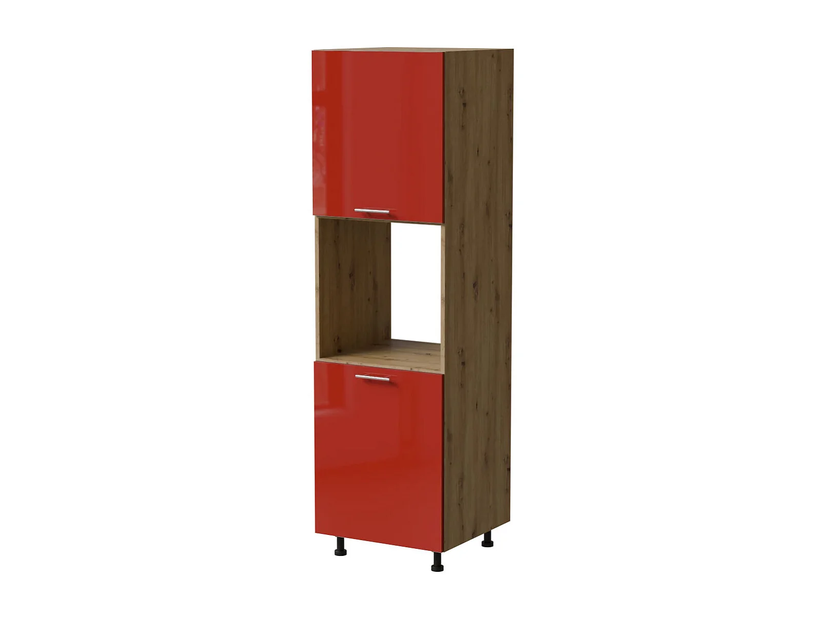 BACKOFENUMBAUSCHRANK Brerra D14/RU/2D RAL 3002 karminrot Hochglanz / Eiche Artisan Matt 60 / 59 / 207cm