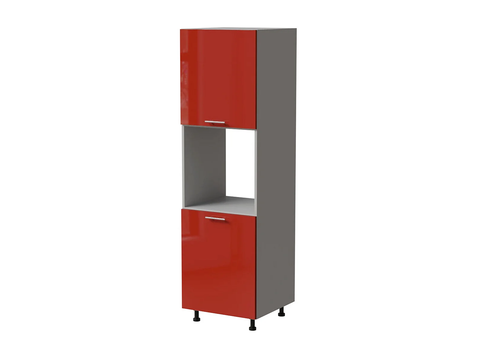 BACKOFENUMBAUSCHRANK Brerra D14/RU/2D RAL 3002 karminrot Hochglanz / Grau Matt 60 / 59 / 207cm