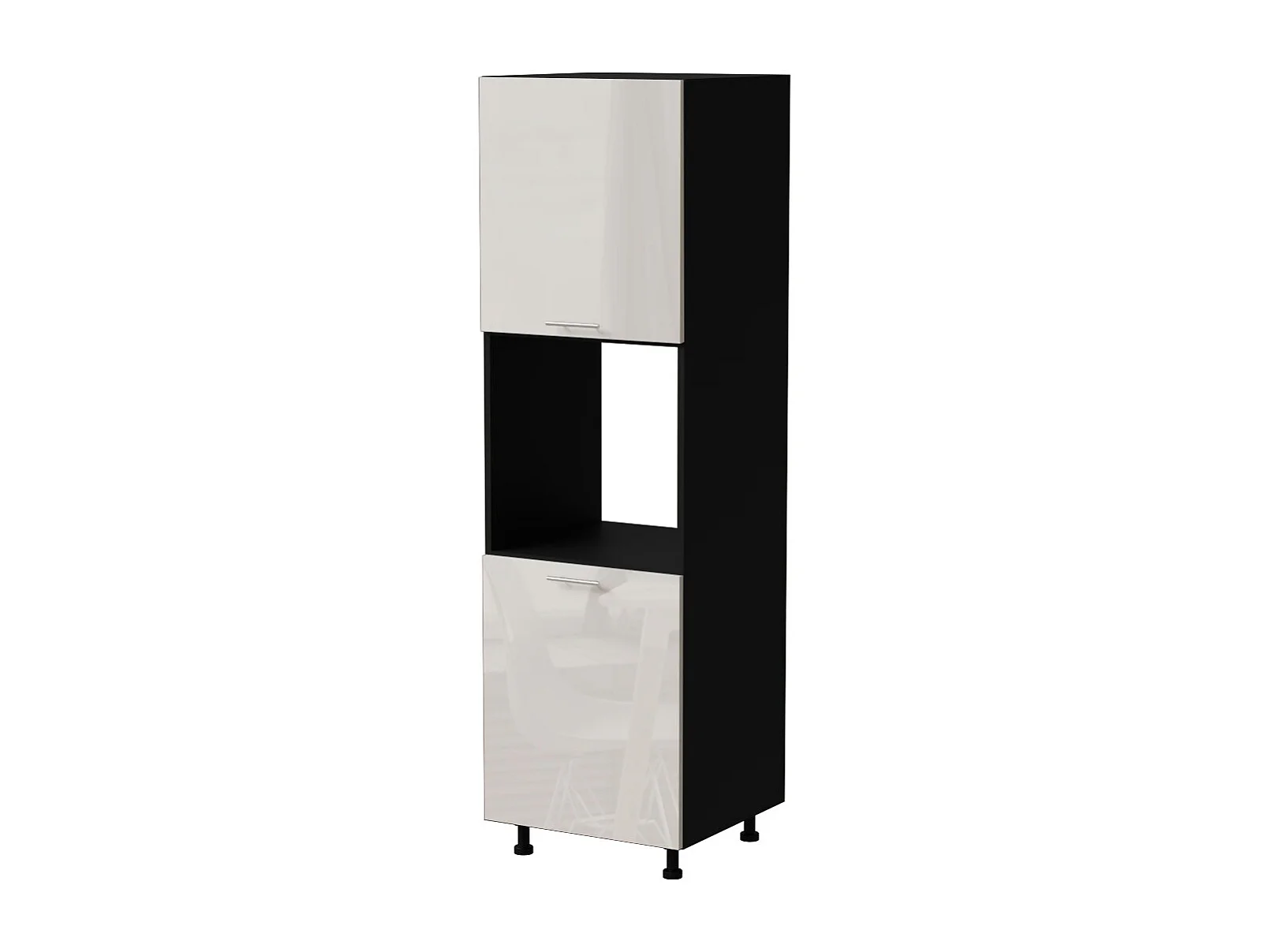 BACKOFENUMBAUSCHRANK Brerra D14/RU/2D RAL 9001 creme Hochglanz / Schwarz Matt 60 / 59 / 207cm