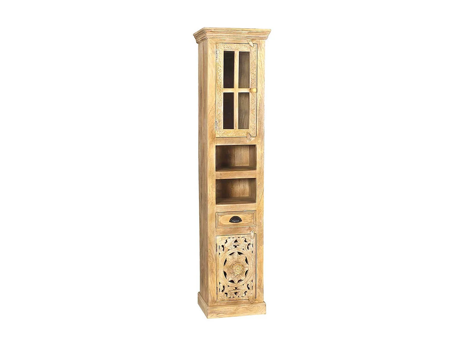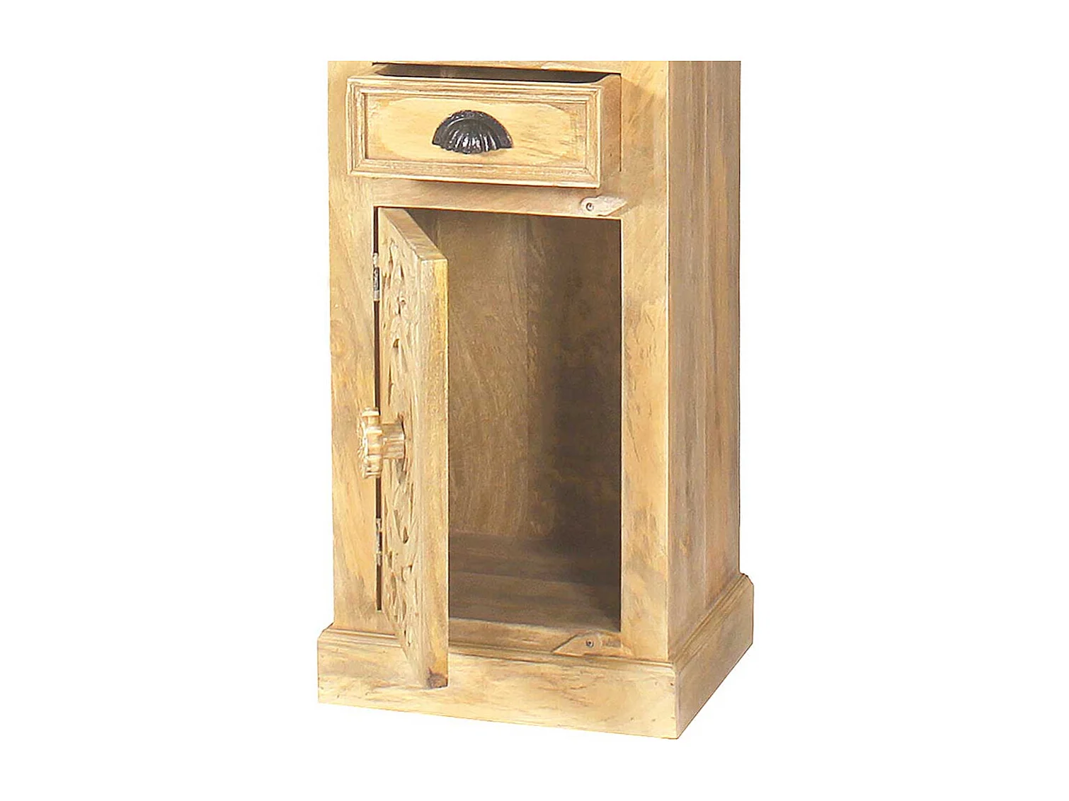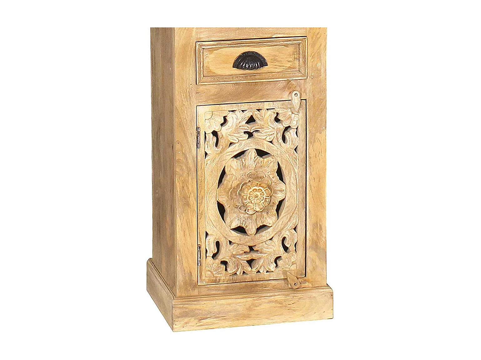 Bad Midischrank aus Mangobaum Massivholz Sandfarben handgearbeitet